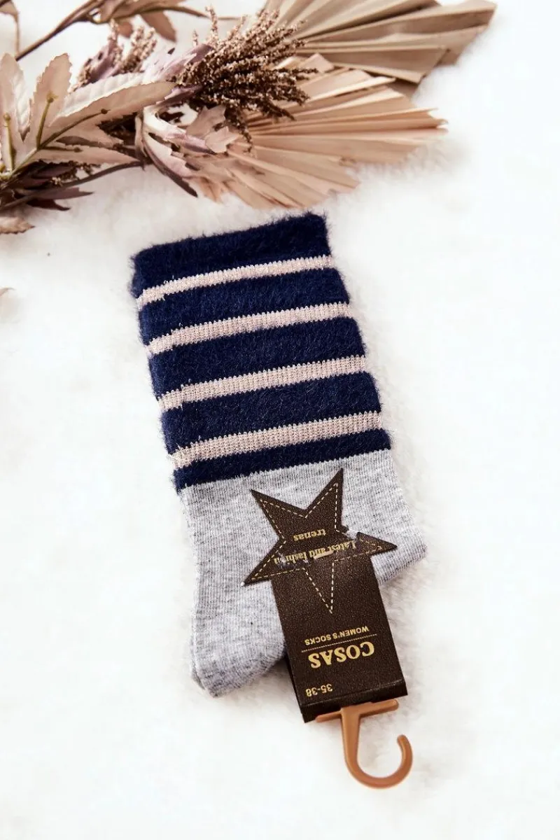 Miękkie i ciepłe damskie skarpetki posiadają delikatne futerko w wyższej części, które jest przyozdobione kilkoma paseczkami w innym kolorze. Świetnie nadadzą się na chłodniejsze dni. Dostępne w różnych kolorach, dlatego sprawdź także pozostałe nasze oferty!