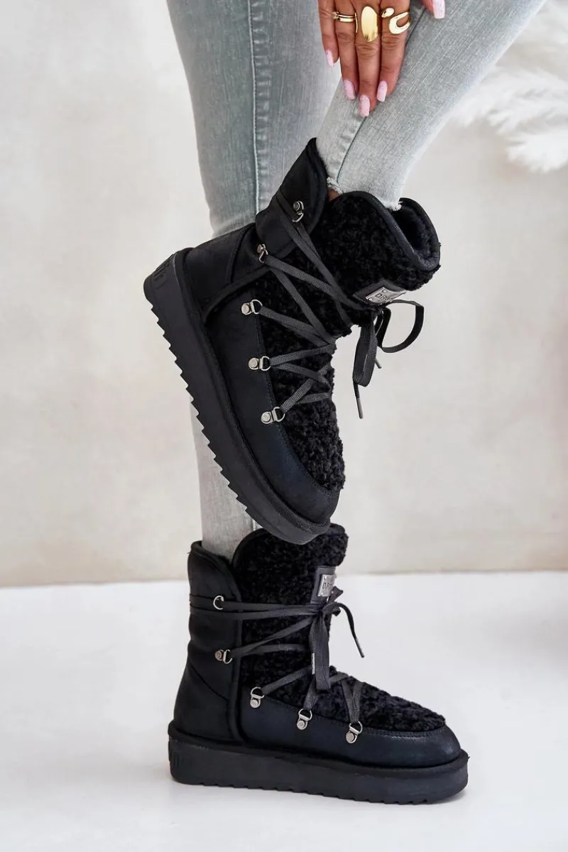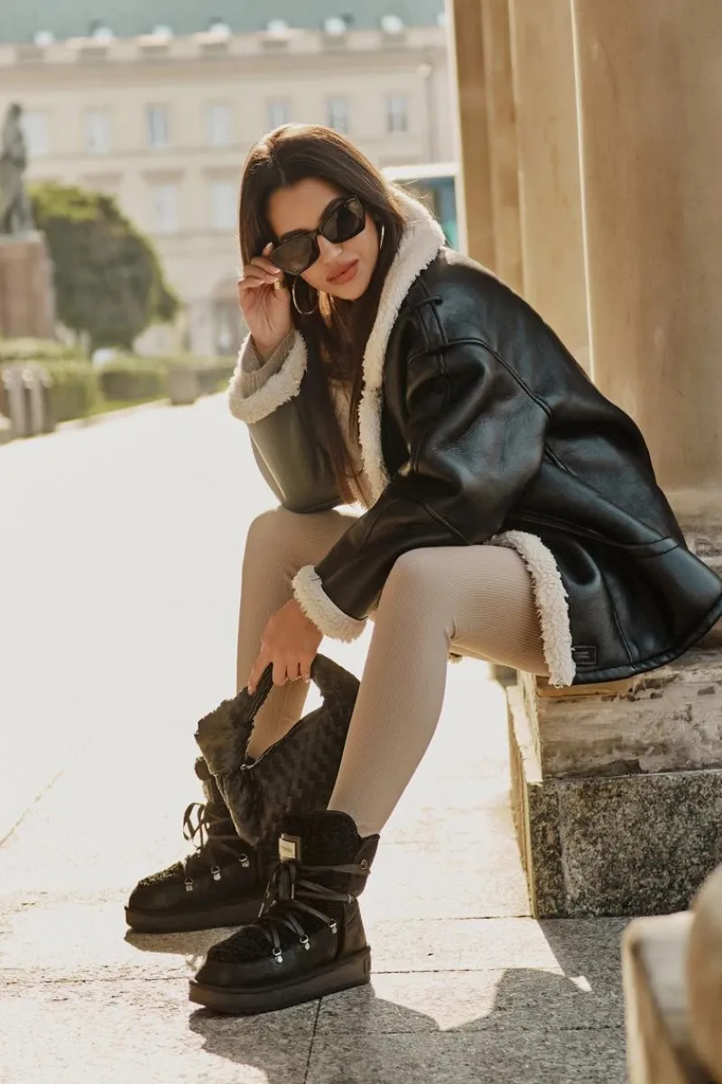 Śniegowce damskie wykonane z wysokiej jakości wodoodpornej tkaniny z mikrofibry. Osadzone na grubej antypoślizgowej podeszwie. Środek oraz przód ocieplony syntetycznym futerkiem. Model ten przeznaczony jest na najmroźniejsze dni. Śniegowce są wsuwane z dodatkowym wiązaniem. Wegańskie. Przy wyborze rozmiaru prosimy sugerować się tabelą rozmiarów.