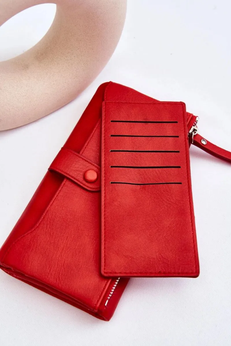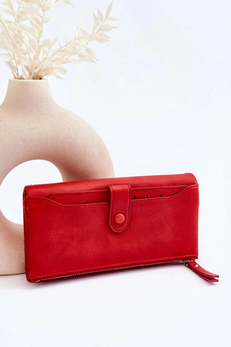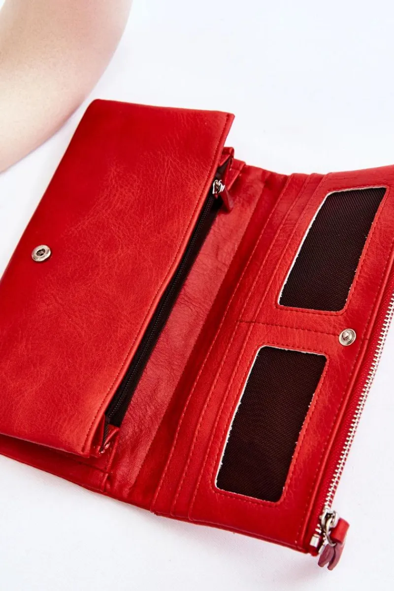 Duży, damski portfel zapinany na napy oraz zamek błyskawiczny. Został wykonany z eko skóry. W środku znajdują się otwarte komory oraz jedna zamykana na suwak. Dodatkowo także portfel zawiera wiele miejsc na wizytówki czy karty kredytowe. Na zewnątrz także znajduje się dodatkowa kieszonka zamykana na zamek błyskawiczny oraz kolejna komora zapinana na napę. Ten portfel pomieści najpotrzebniejsze rzeczy, takie jak: dokumenty czy pieniądze.