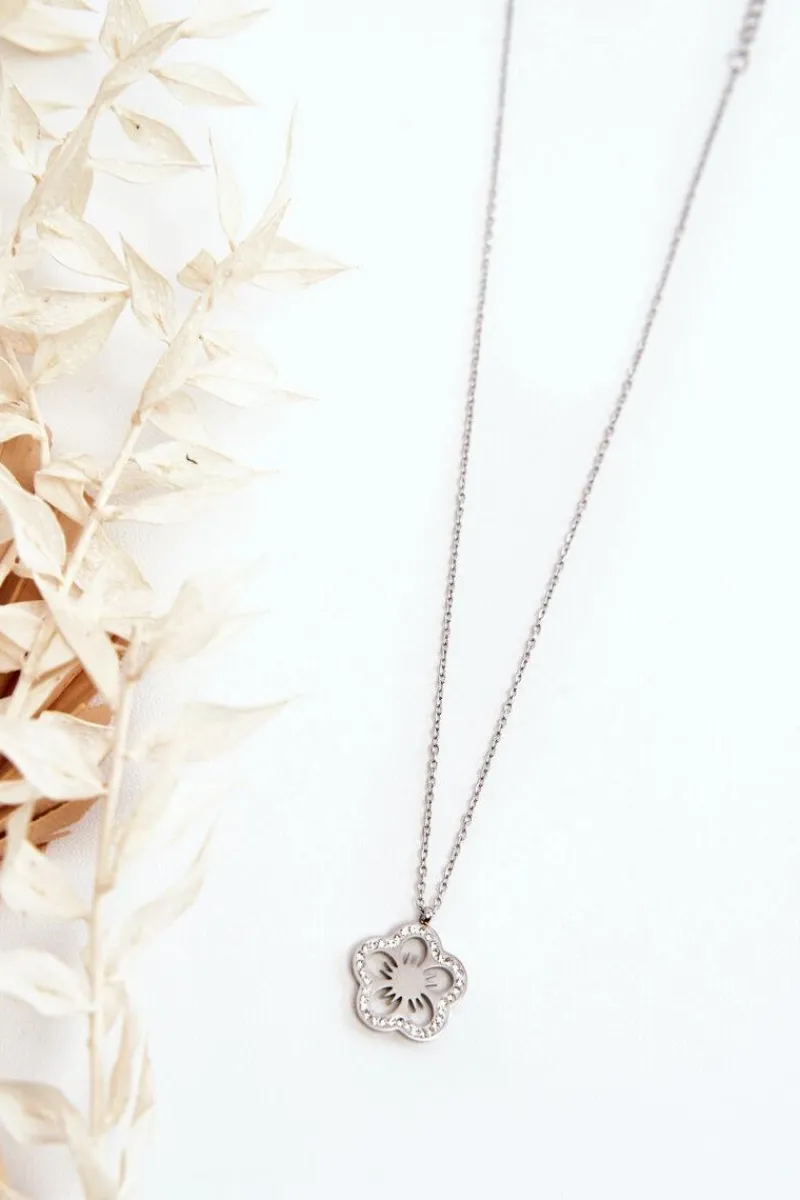 Sale Damski Łańcuszek Z Kwiatem Srebrny Naszyjniki