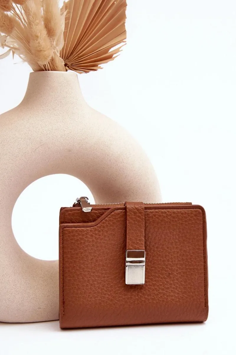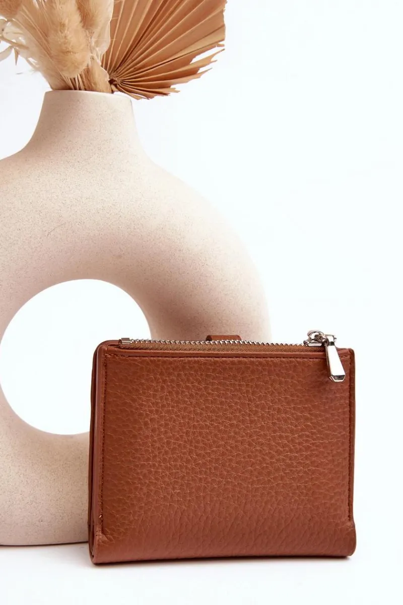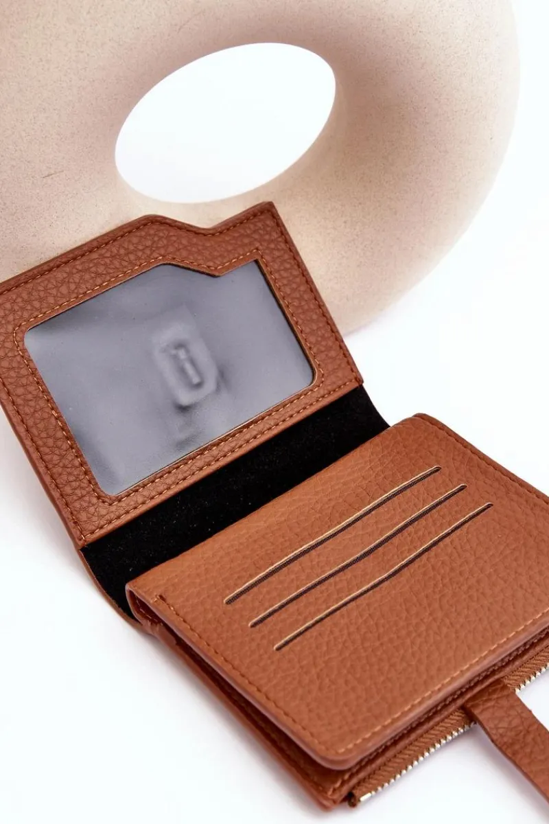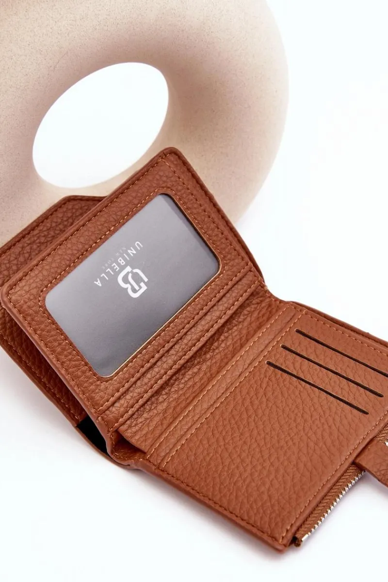 Portfel damski wykonany z eko skóry. Zapinany na klips magnetyczny. W środku miejsce na banknoty, karty i fotografię. Dodatkowa kieszeń zapinana jest suwakiem. Model ten jest niewielki, ale z pewnością pomieści najpotrzebniejsze rzeczy.