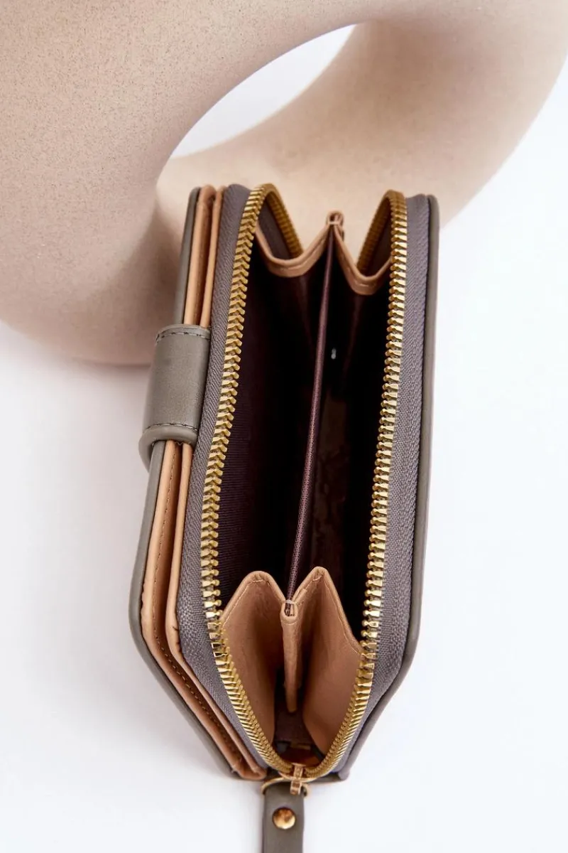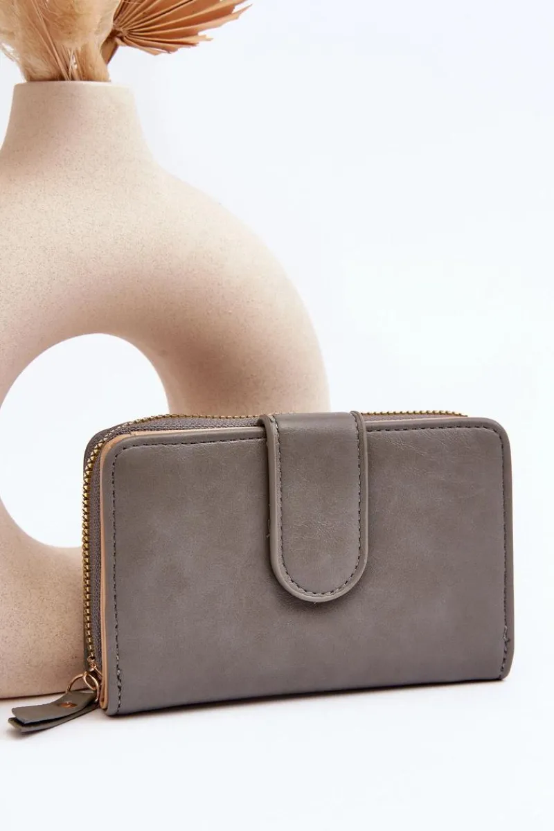 Klasyczny portfel damski wykonany z eko skóry. Model ten posiada kieszeń na monety zamykaną suwakiem. Wewnątrz znajduje się sekcja na banknoty oraz karty. Portfel zapinany jest na magnes. Klasyczny fason z pewnością przypadnie do gustu każdej kobiecie!