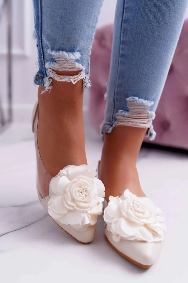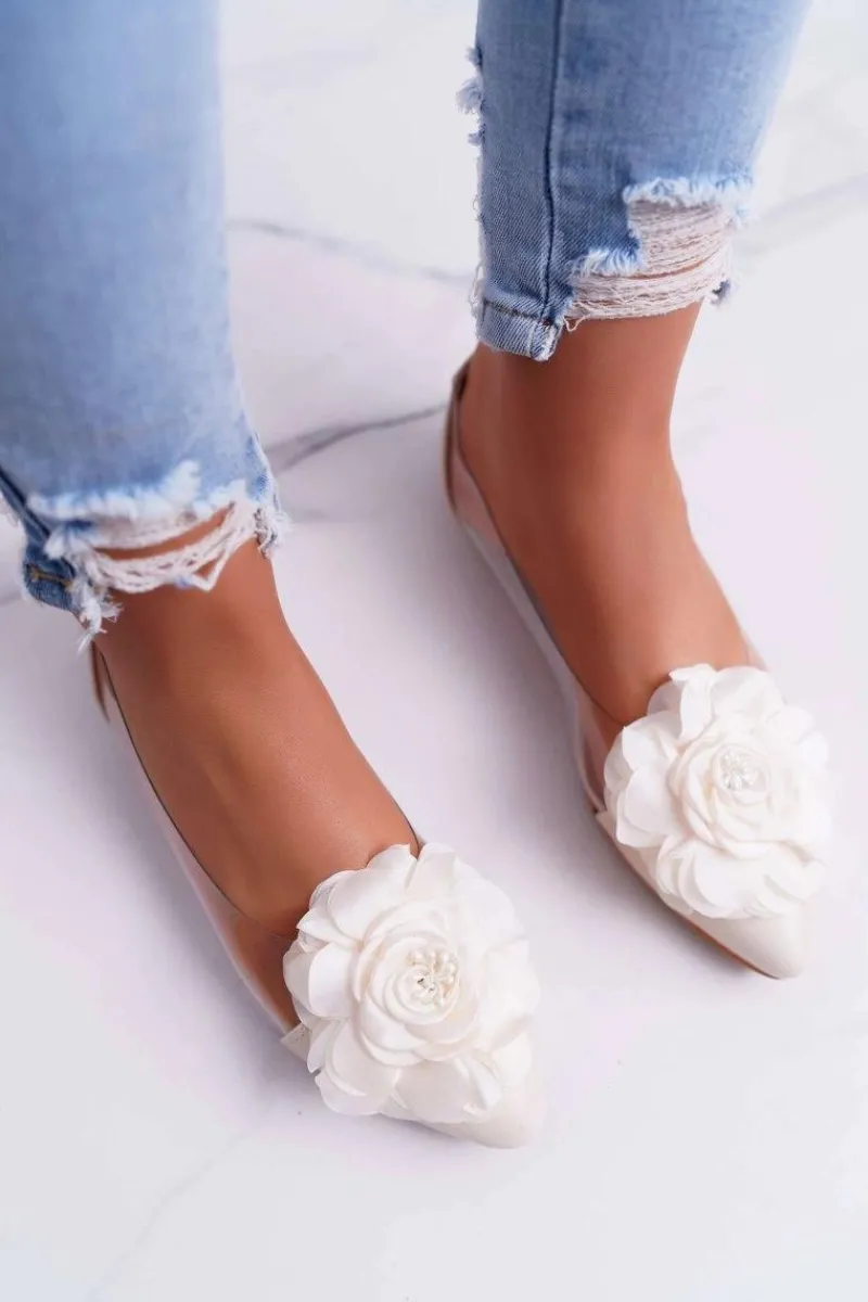 Balerinki to buty, które muszą znaleźć się w szafie każdej kobiety. Można je nosić przez cały rok do różnych okazji. Nasz model wpasuje się w wiele stylizacji – tych mniej, jak i bardziej oficjalnych. Nosek zdobiony dużym pięknym materiałowym kwiatem. Delikatna wkładka da nam komfort przez długie godziny. Piękne transparentne wstawki, sprawiają że fason jest niezwykle elegancki i kobiecy. Firma Lu Boo nie przestaje nas zaskakiwać, konieczne sprawdź całą naszą kolekcję!
