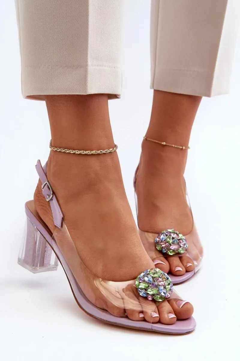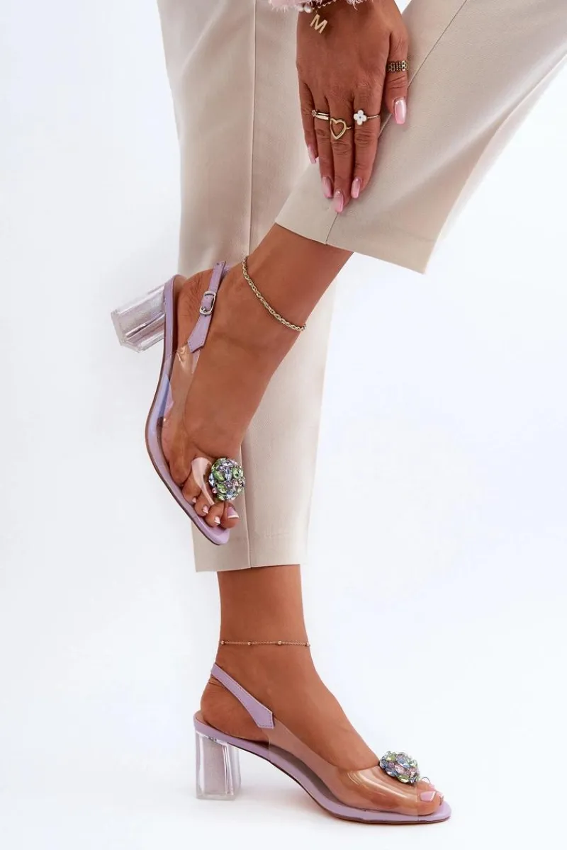 Sale Damskie buty S.Barski Transparentne Sandały Na Słupku z Ozdobą Fioletowe D&A MR38-454 Fioletowy