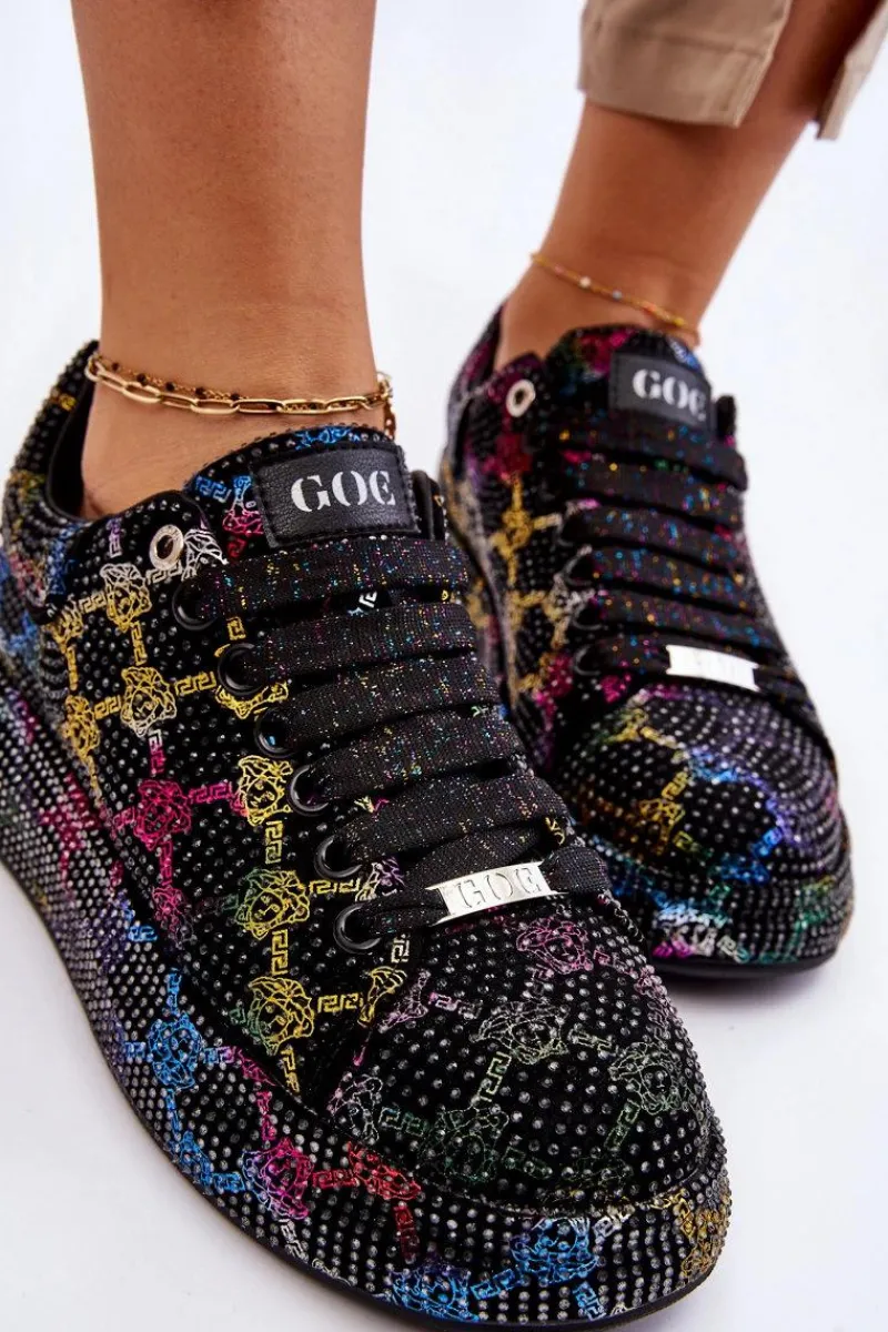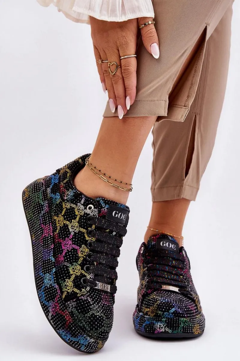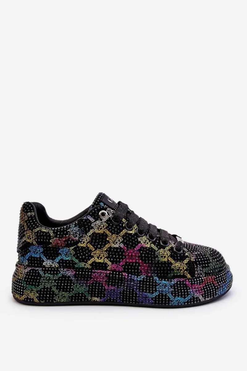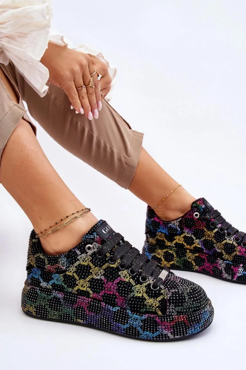 Wyjątkowe buty sportowe wykonane z wysokiej jakości materiału tekstylnego z dżetami. Miękka, eko skórzana wkładka gwarantuje wygodne użytkowanie. Osadzone na masywnej platformie. Buty posiadają klasyczne sznurowanie, które pozwoli na odpowiednie dopasowanie obuwia. Świetny model, który powinien znaleźć się w Twojej szafie! Przy wyborze rozmiaru prosimy sugerować się tabelą rozmiarów.