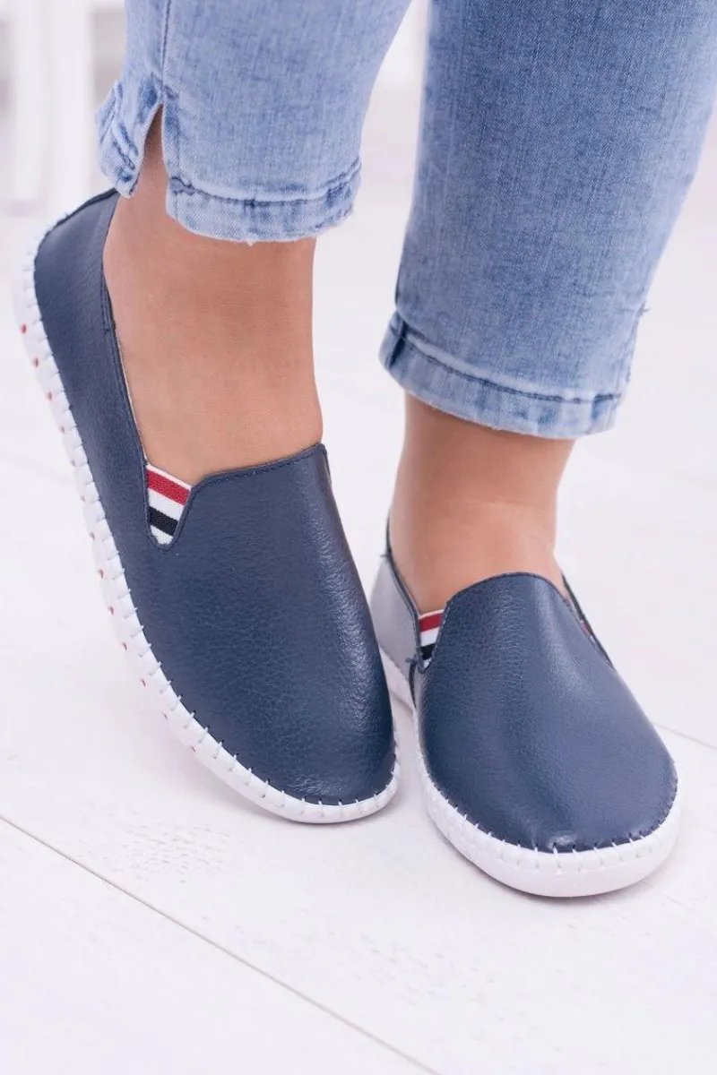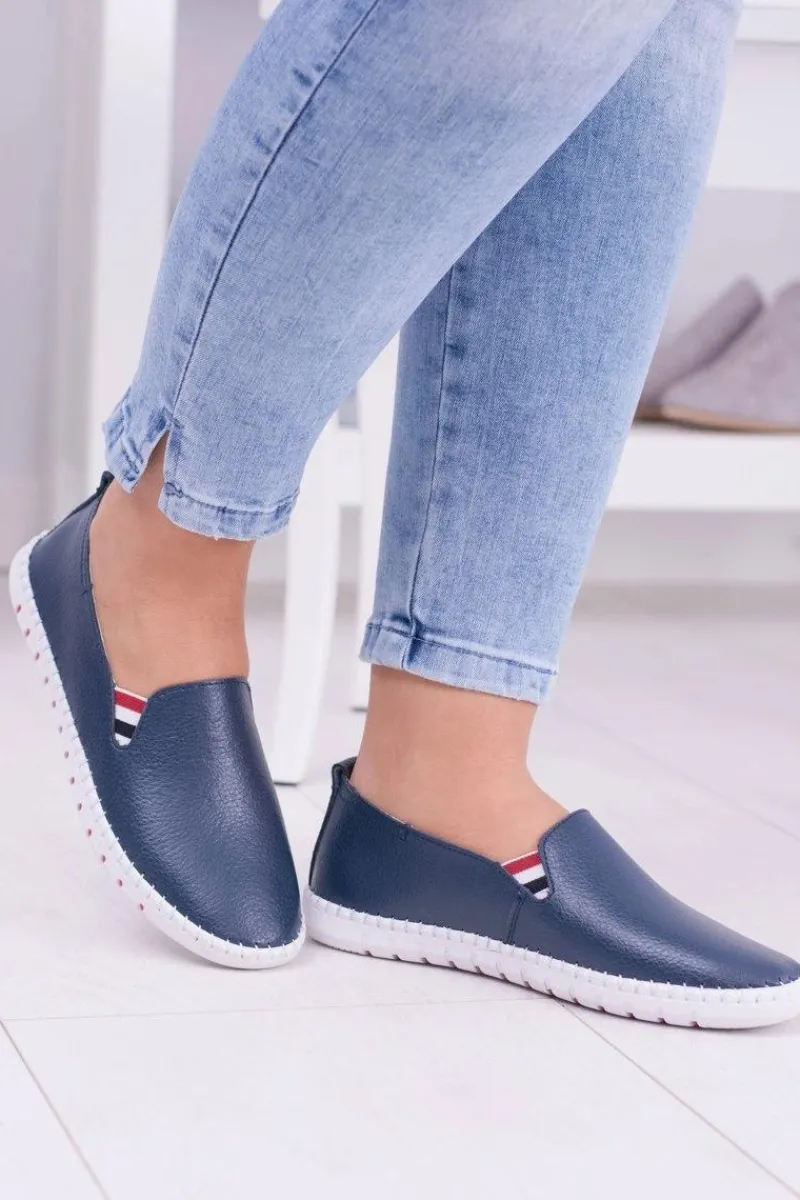 Sale Damskie Granatowe Skórzane Tenisówki Bellara Damskie Półbuty Skórzane|Mokasyny Damskie Skórzane