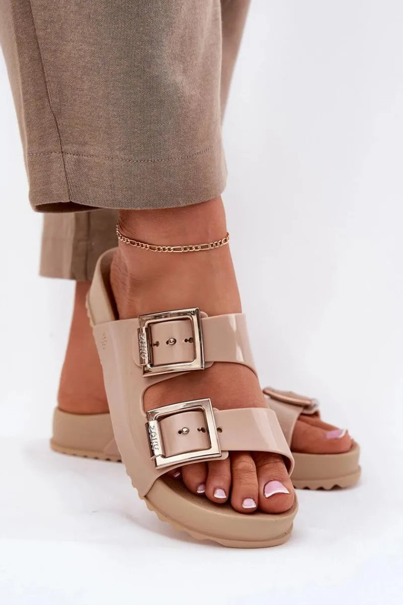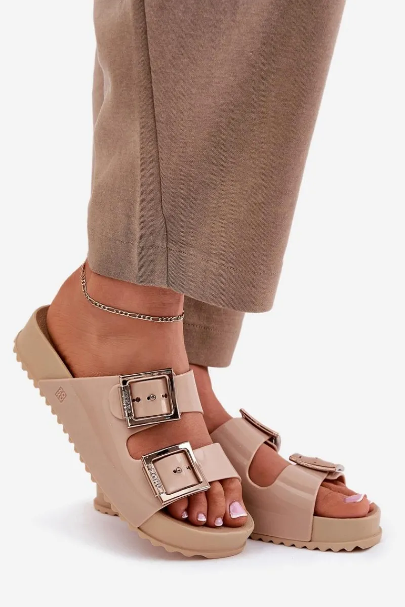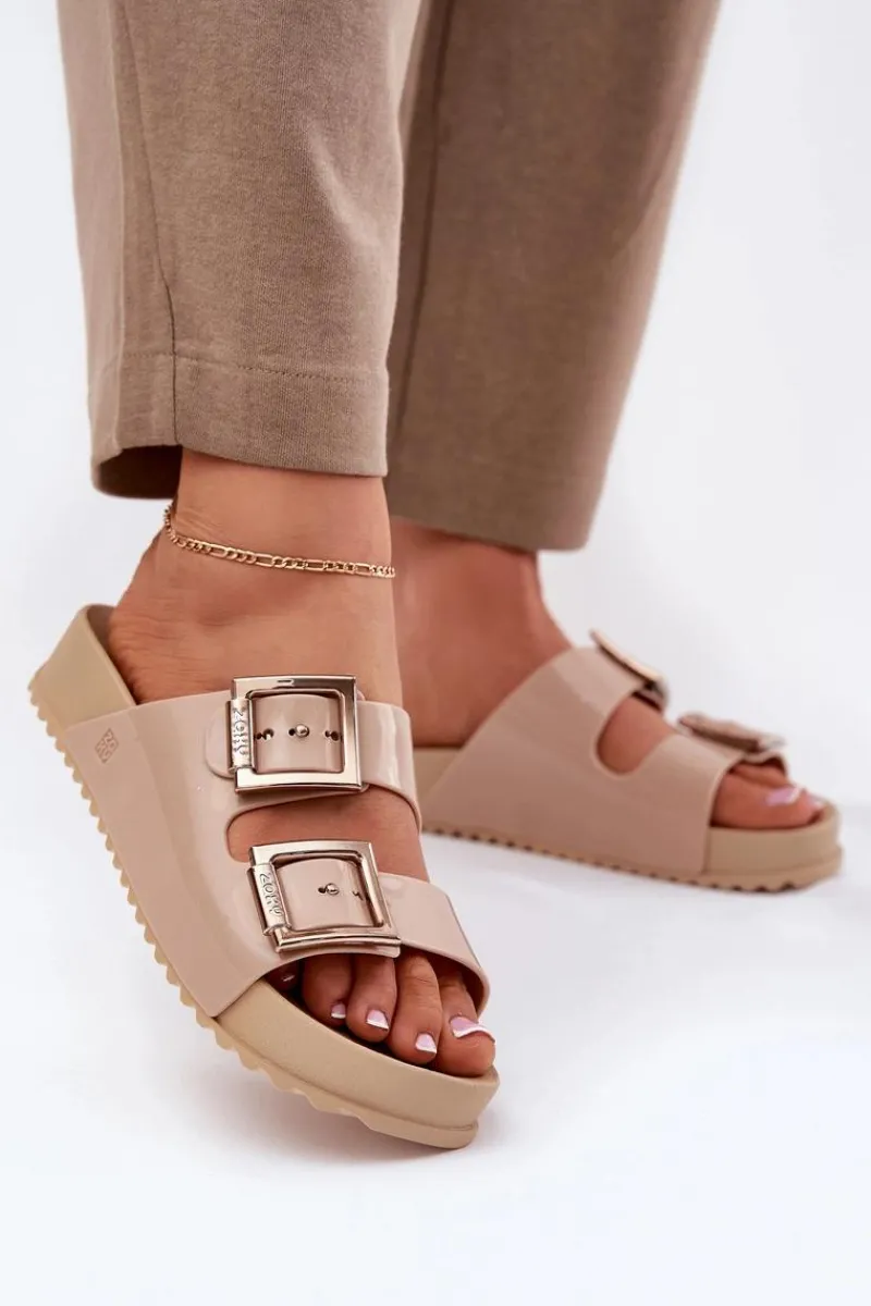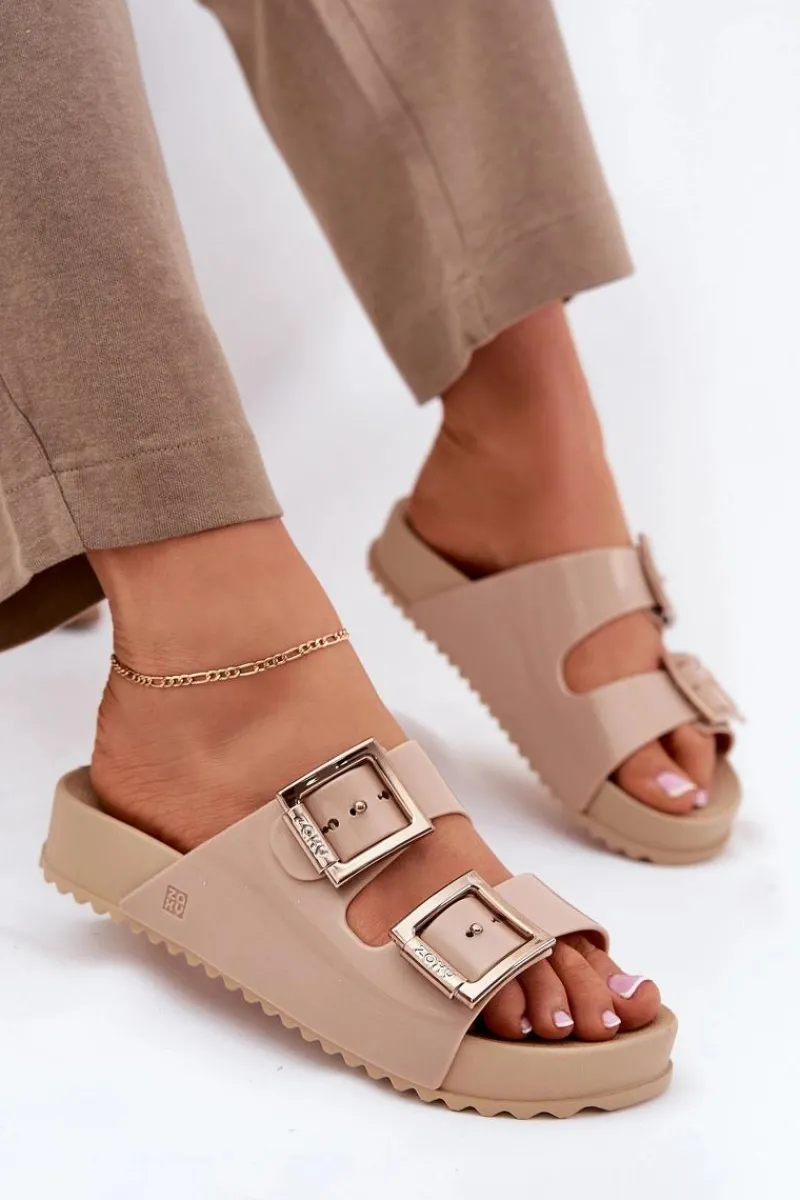 Wygodne obuwie, które zapewni Twoim stopom pełen komfort podczas letnich, ciepłych dni. Funkcjonalne klapki na płaskiej podeszwie z delikatną platformą. Modne klapki zostały wykonane z lekkiego, a przy tym wysokogatunkowego tworzywa sztucznego. Paski są regulowane, dzięki którym odpowiednio dopasujesz klapki do tęgości nogi. Buty te są wegańskie i hipoalergiczne, a dodatkowo w 100% podlegają recyklingowi. Żaden z produktów marki ZAXY nie posiada komponentów pochodzenia zwierzęcego. Pachnące gumą balonową. Przy wyborze rozmiaru prosimy kierować się tabelą rozmiarów.