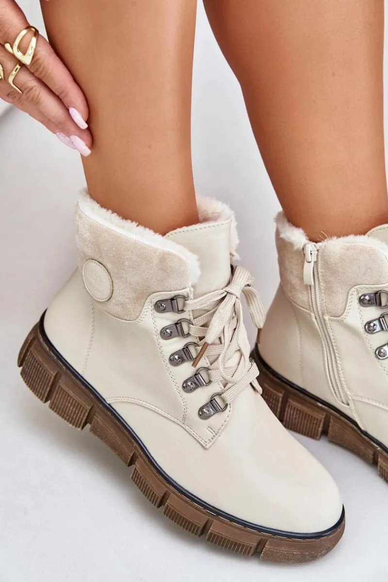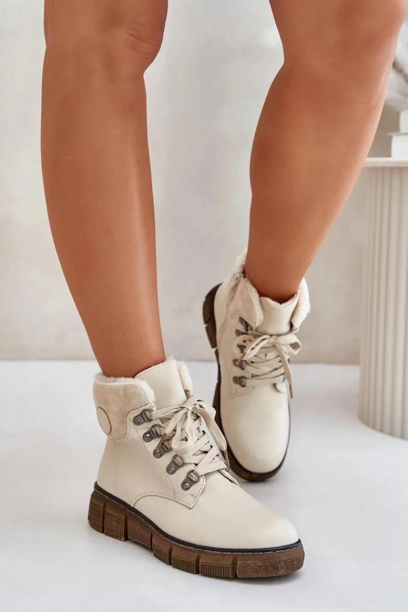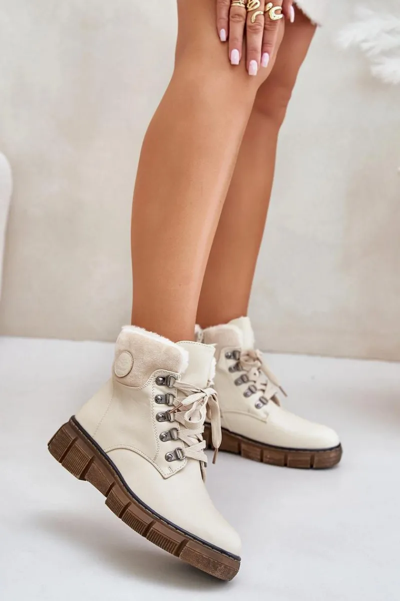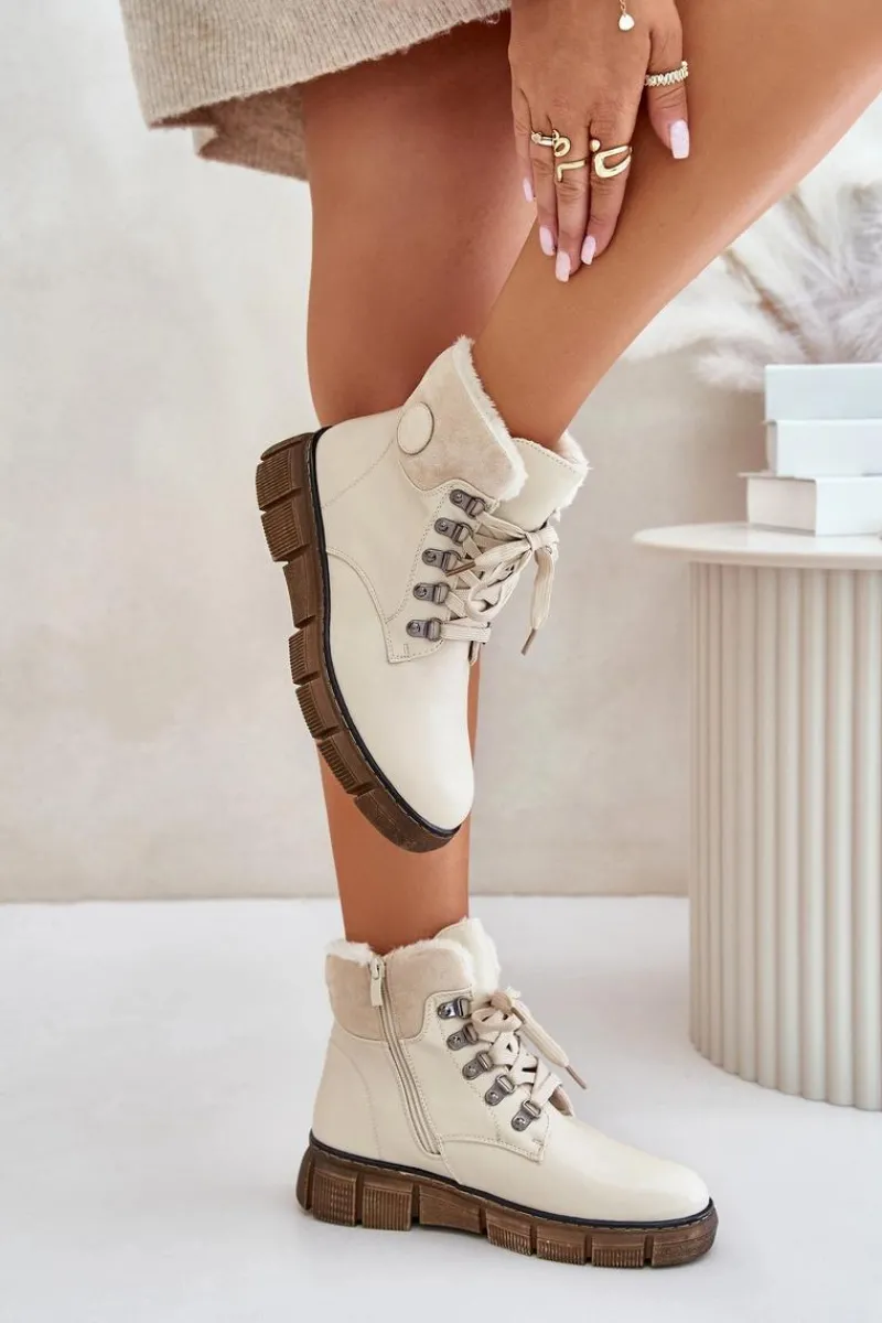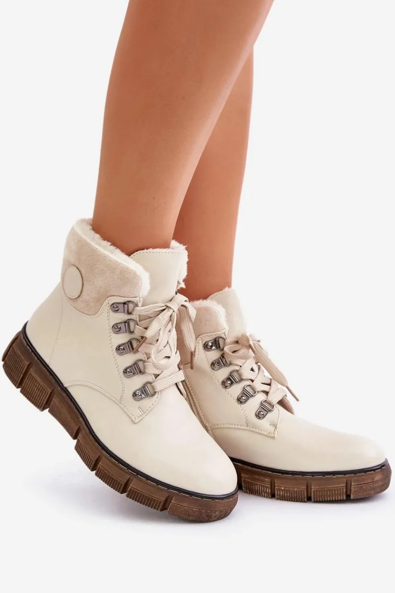 Trapery z eko skóry na platformie to idealne połączenie stylu i funkcjonalności na chłodne dni. Sznurowane i zapinane na zamek, co zapewnia wygodne zakładanie oraz idealne dopasowanie do stopy. Wnętrze ocieplane miękkim futerkiem gwarantuje ciepło nawet w najzimniejsze dni. Platforma dodaje modnego wyglądu, jednocześnie zapewniając dodatkową ochronę przed zimnem i wilgocią. To świetny wybór dla osób szukających praktycznego, a zarazem stylowego obuwia na zimę. Przy wyborze rozmiaru prosimy sugerować się tabelą rozmiarów.