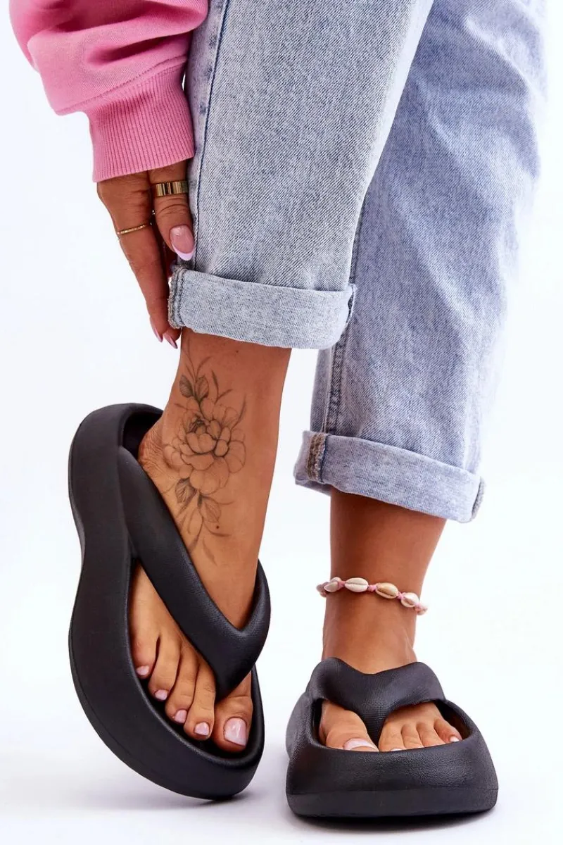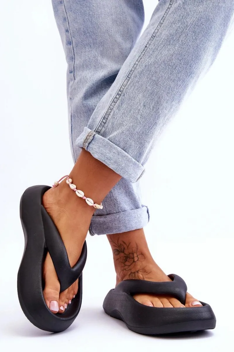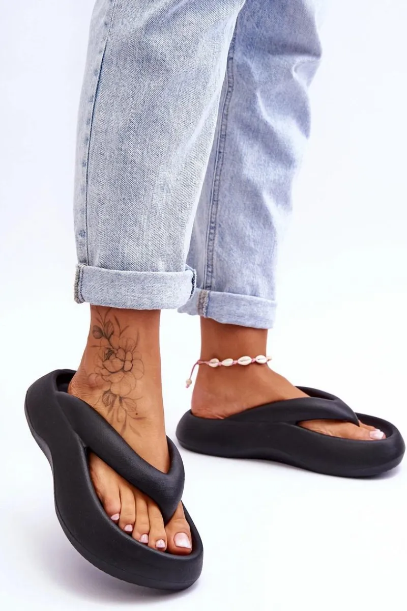Wygodne, damskie japonki wykonane w całości z piankowego tworzywa. Model ten został osadzony na masywnej platformie, dzięki któremu są bardzo komfortowe w użytkowaniu. Ten wyjątkowy fason świetnie sprawdzi się w upalne dni! Klapki-japonki świetnie sprawdzą się na co dzień, na plażę czy basen. Przy wyborze rozmiaru prosimy sugerować się tabelą rozmiarów.