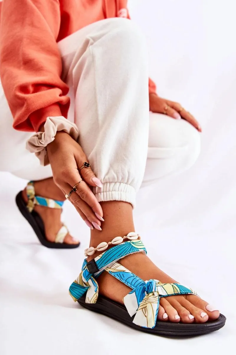 Sandały damskie zapinane na rzep, dzięki któremu można je odpowiednio dopasować do tęgości nogi. Buty są bardzo lekkie. Podeszwa oraz wkładka zostały wykonane z gumowego tworzywa, natomiast wierzch z materiału tekstylnego. Idealny model na upalne dni! Delikatna platforma świetnie sprawdzi się także podczas wycieczek, spaceru po piaszczystej plaży czy po mieście. Koniecznie sprawdź pozostałe modele damskich sandałek! Przy wyborze rozmiaru prosimy sugerować się tabelą rozmiarów.