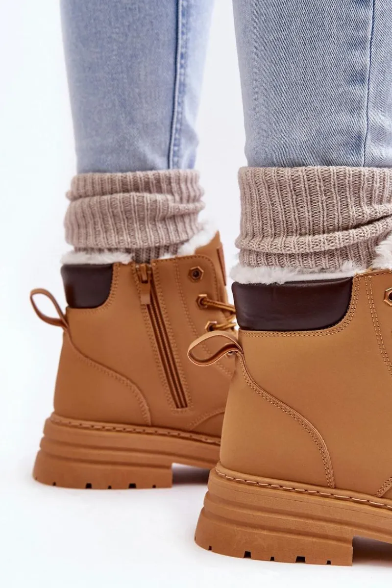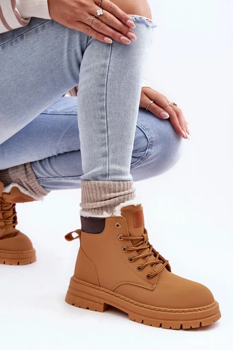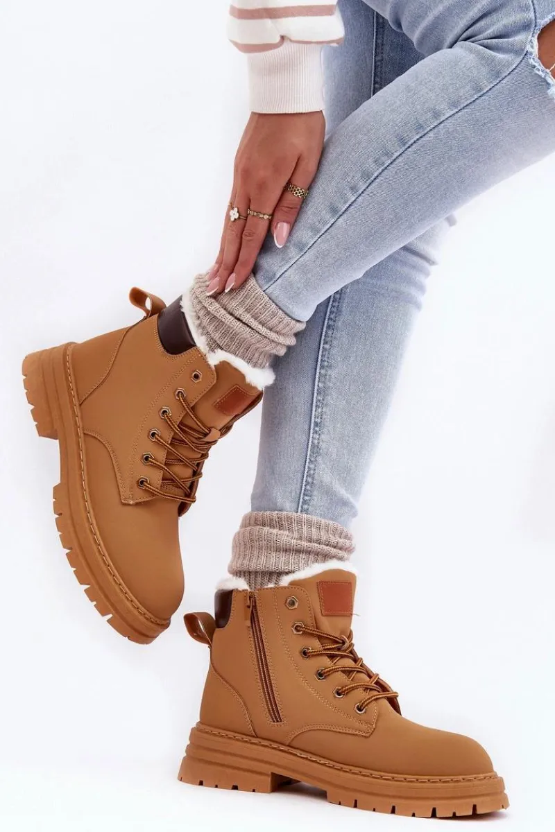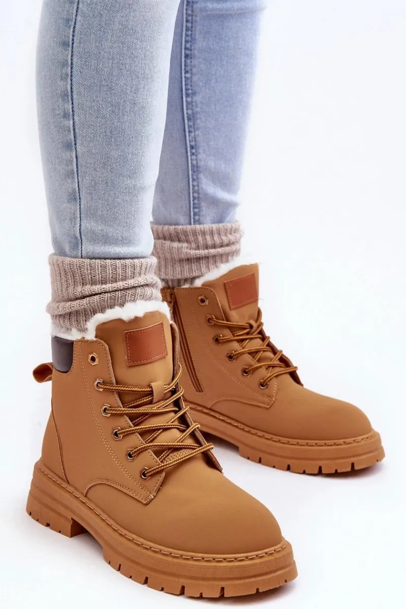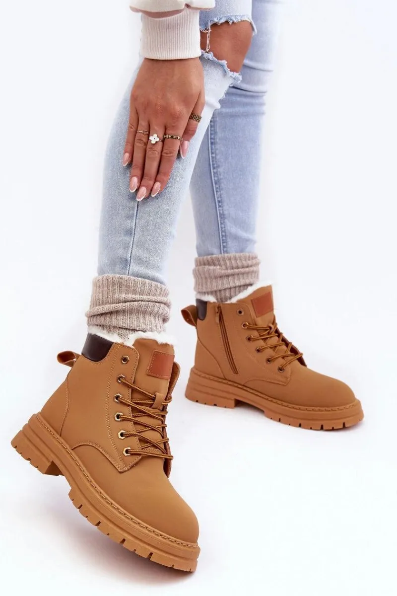 Klasyczne trapery damskie wykonane z eko skóry. Osadzone na platformie i płaskim obcasie. Zapinane na suwak z boku oraz dodatkowo posiadają sznurowanie. Środek ocieplony grubym futerkiem. Ten model traperów zachwyci każdego! Przy wyborze rozmiaru prosimy sugerować się tabelą rozmiarów.