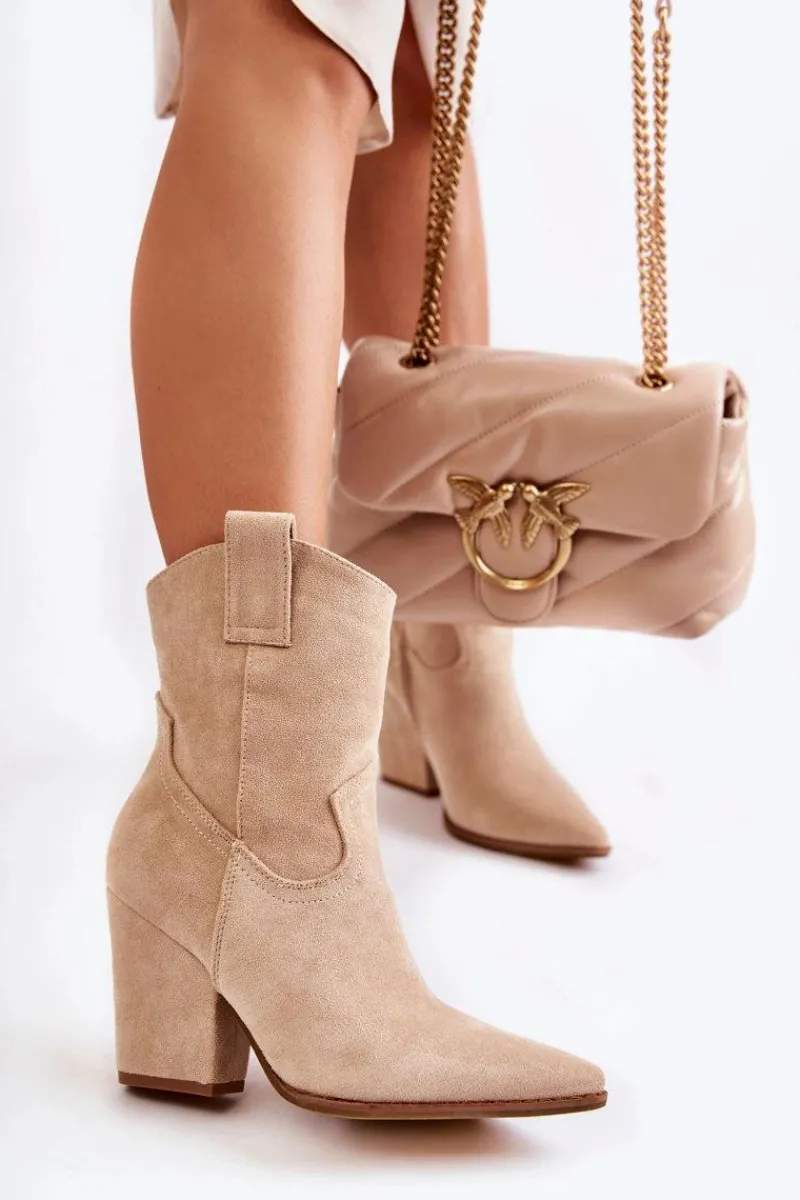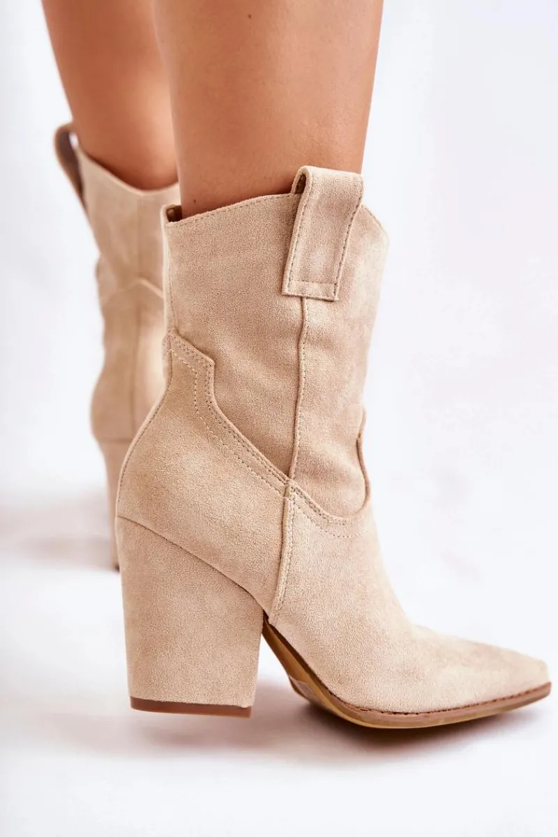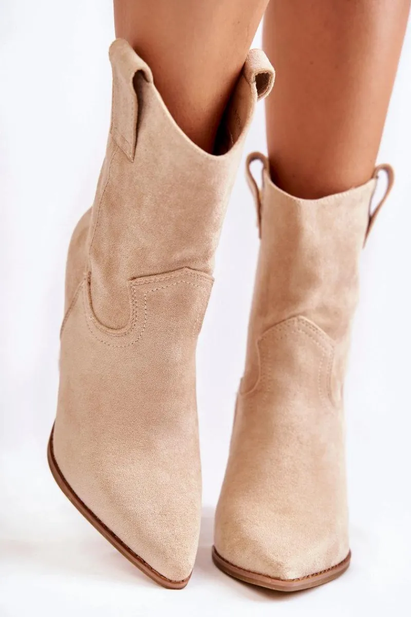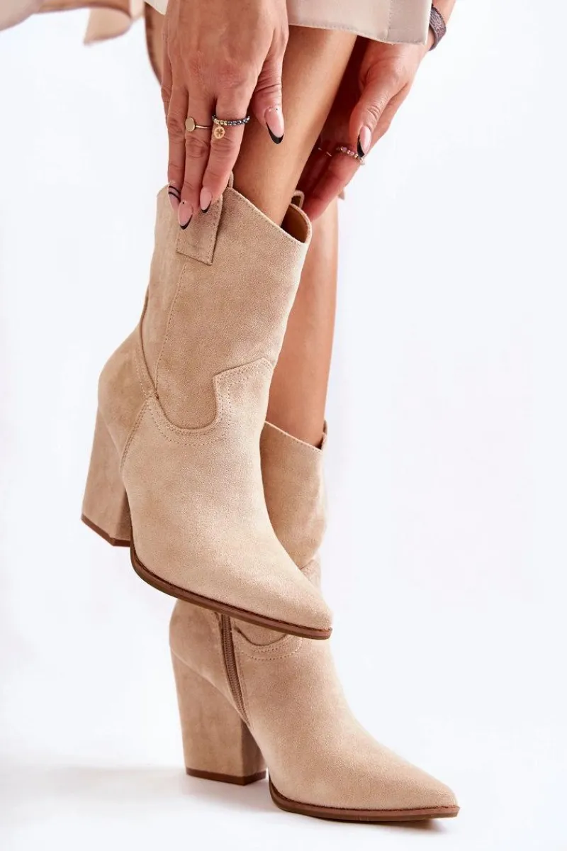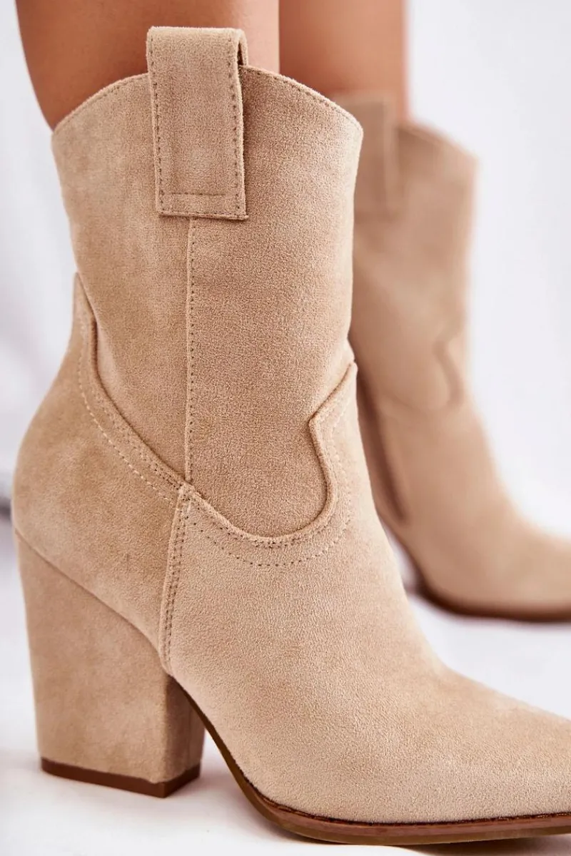 Botki o fasonie kowbojek posiadają u góry dwie pętelki, które mają ułatwić zakładanie obuwia. Zapinane na zamek błyskawiczny. Dodatkowo posiadają usztywniany zapiętek. Wykonane z eko zamszu z delikatnymi przeszyciami. Botki typu kowbojki będą świetnym uzupełnieniem wielu stylizacji. Możesz nosić je w wielu stylizacjach m.in.: do szmizjerek, zwiewnych spódnic czy spodni jeansowych. Przy wyborze rozmiaru prosimy sugerować się tabelą rozmiarów.