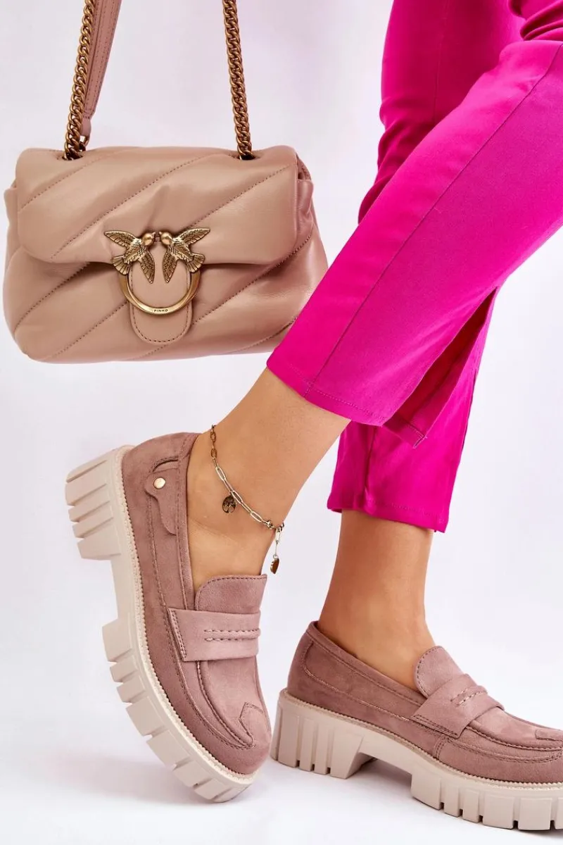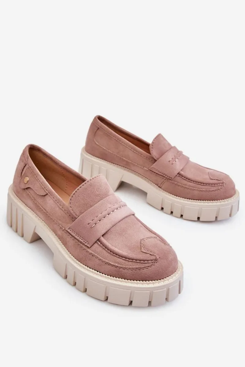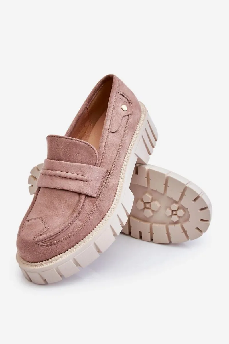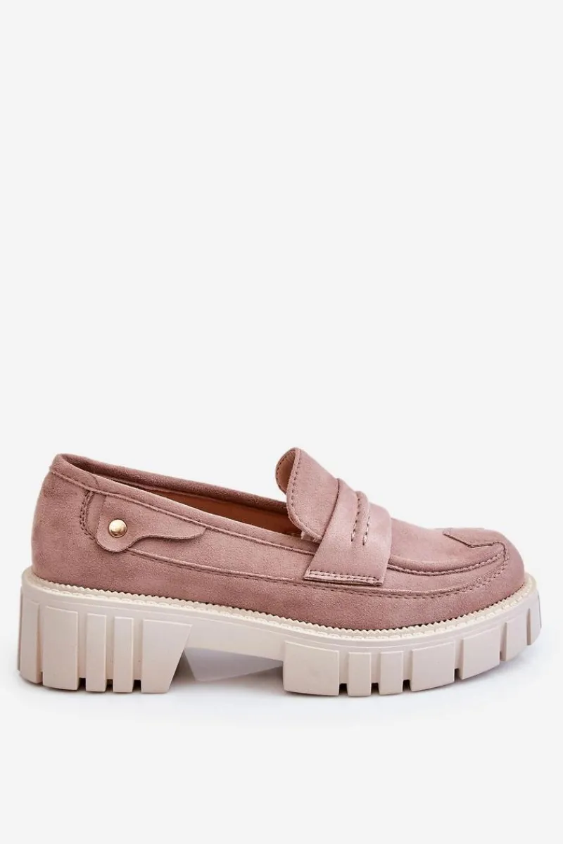 Świetne półbuty w stylu loaferów zostały wykonane z wysokiej jakości eko skóry z obszyciami. Charakterystyczne zdobienie w postaci paseczka na przodzie oraz nitu z boku cholewki. Posiadają masywną platformę oraz płaski obcas. Miękka wykonana z eko skóry wkładka zadba o komfort podczas użytkowania obuwia. Dodatkowo zapiętek jest usztywniany. Przy wyborze rozmiaru prosimy sugerować się tabelą rozmiarów.