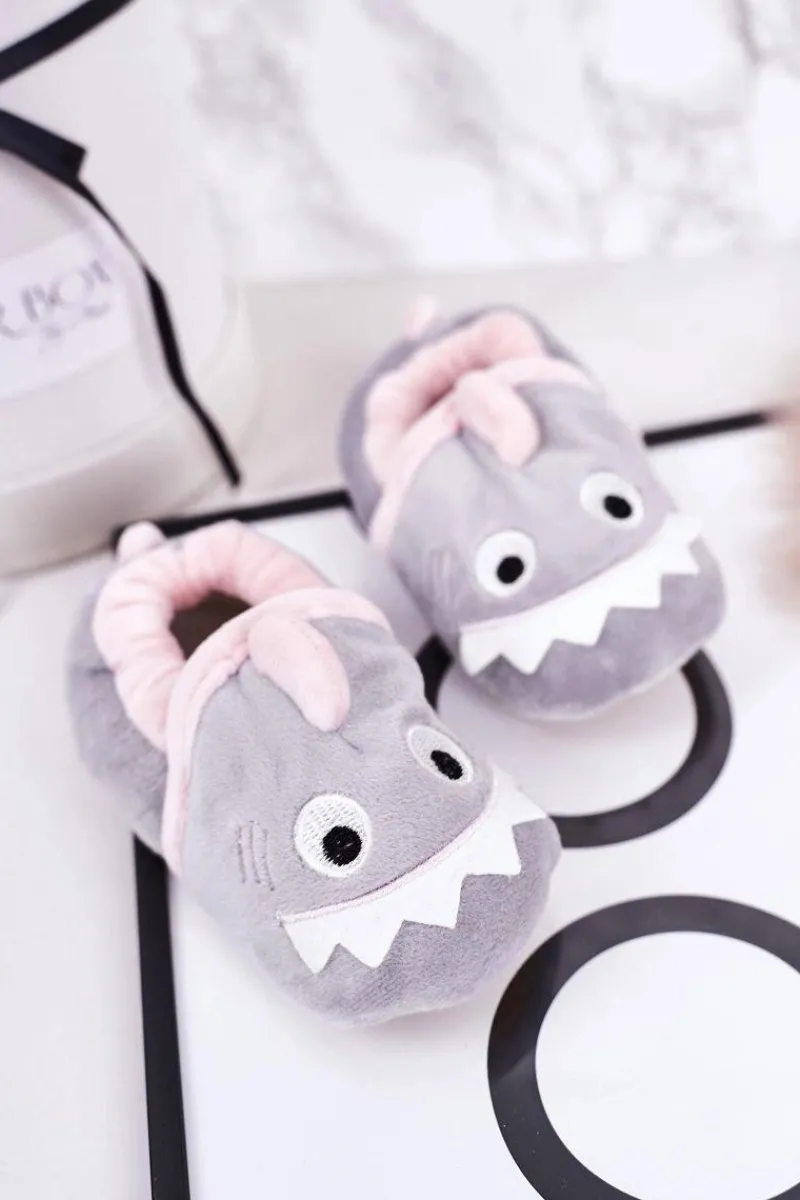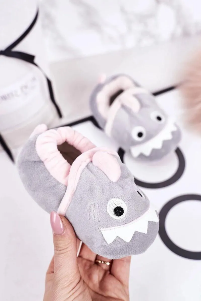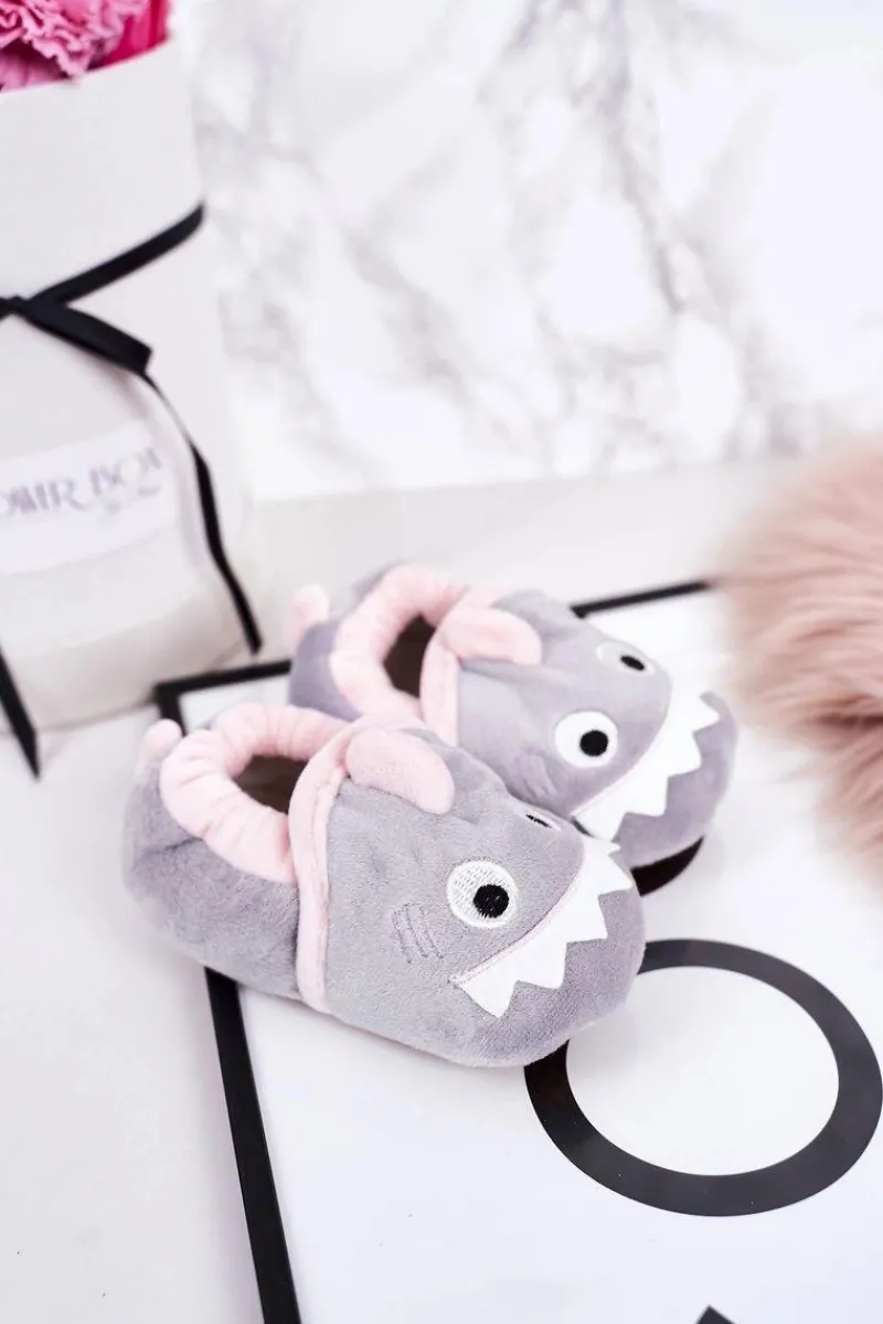 Sale Dziecięce Ocieplane Welurowe Papcie Szare Monster Dzieci Chłopięce|Dziewczęce