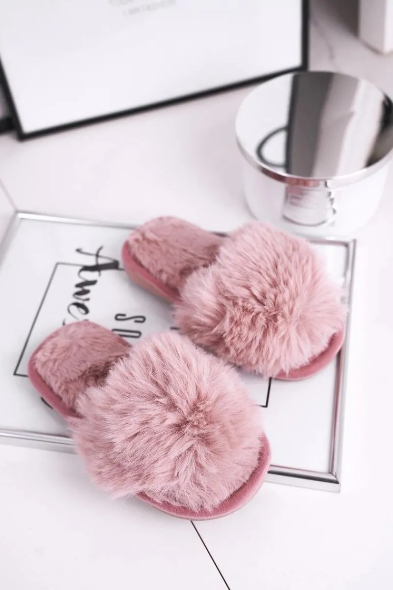 Sale Dziecięce Papcie Klapki z Futerkiem Pudrowy Róż Snow Ball Damskie Dziewczęce|Dziewczęce