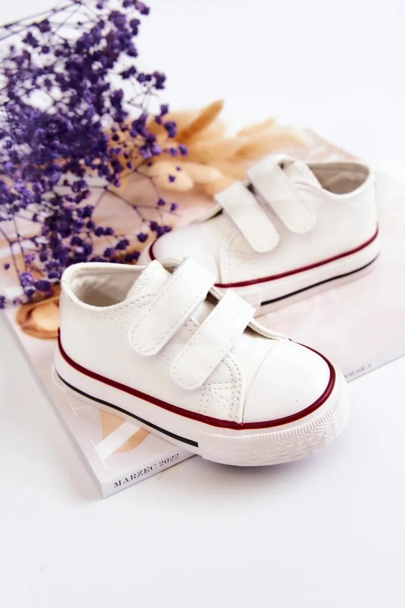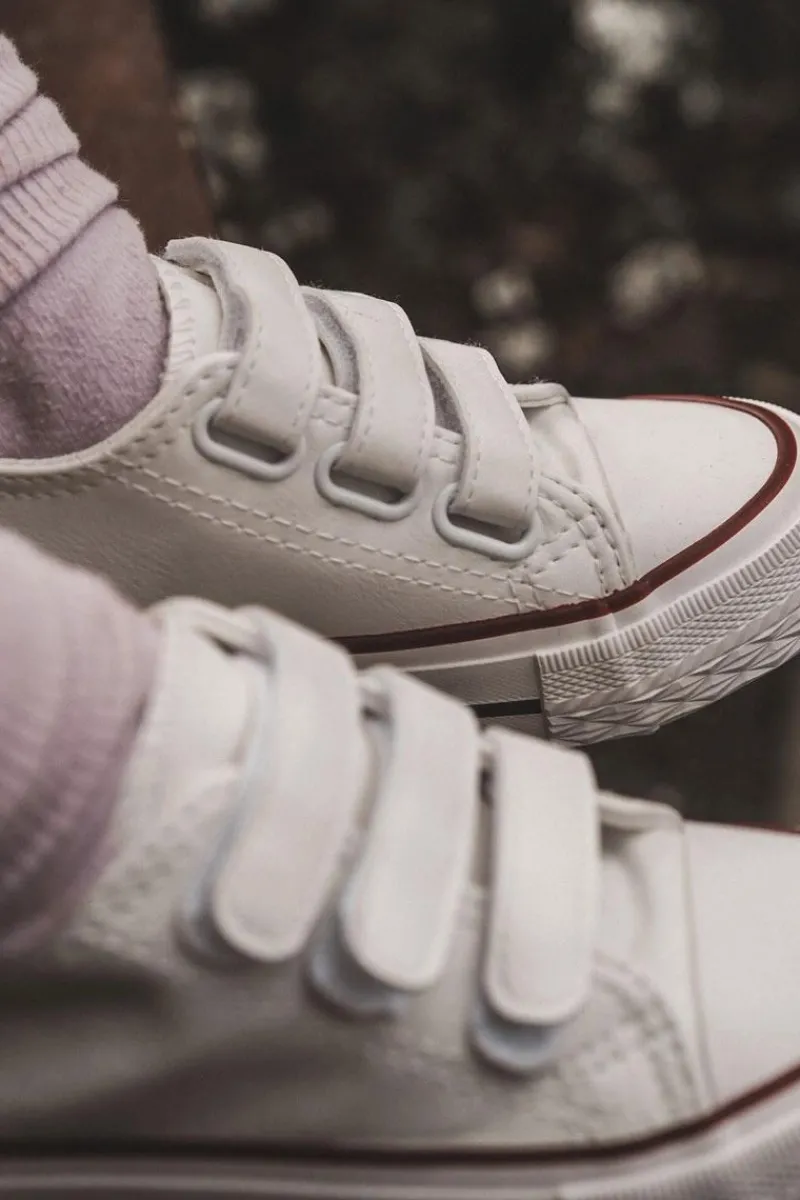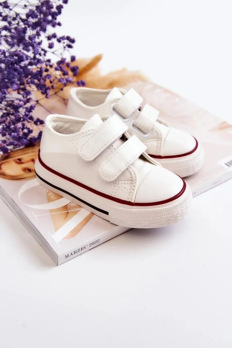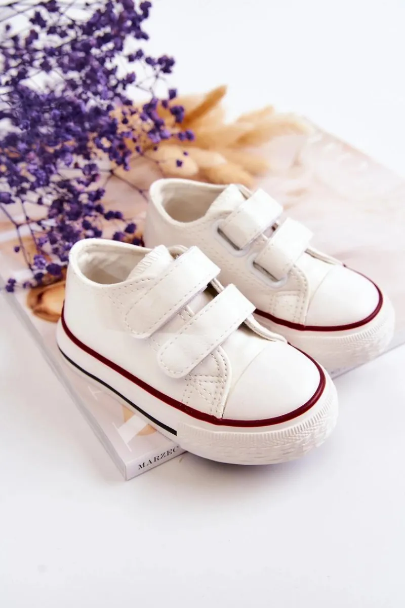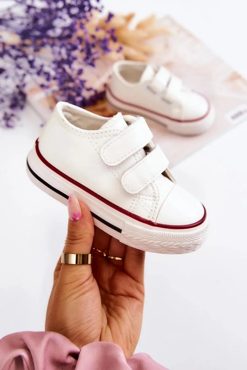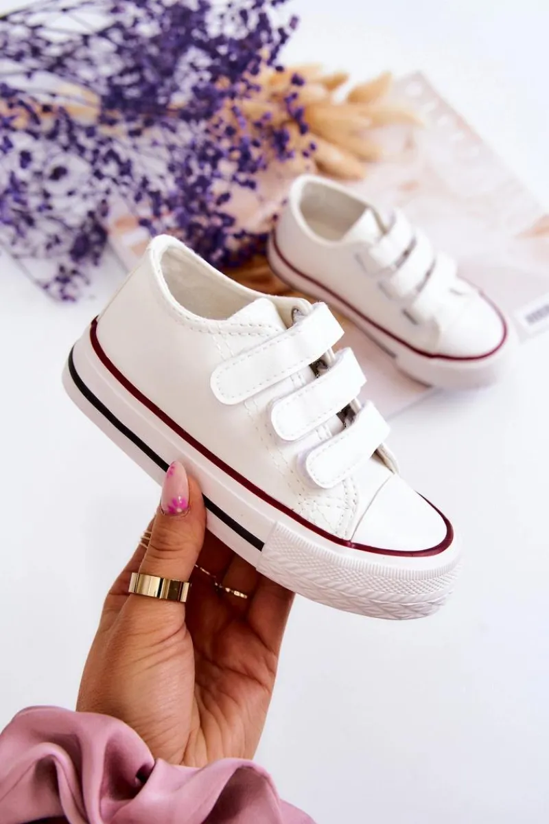 Tenisówki z klasyczną cholewką przed kostkę. Posiadają zapinanie na rzep, co pozwala na odpowiednie dopasowanie obuwia. Osadzone na delikatnej platformie. Wykonane z eko skóry z zaokrąglonym noskiem, który jest wzmocniony gumowym tworzywem. Szukasz uniwersalnych tenisówek na co dzień dla swojej pociechy? Ten model będzie idealny! Rozmiary 18-23 posiadają po dwa rzepy, natomiast rozmiary 24-35 po trzy rzepy. Przy wyborze rozmiaru prosimy sugerować się tabelą rozmiarów.