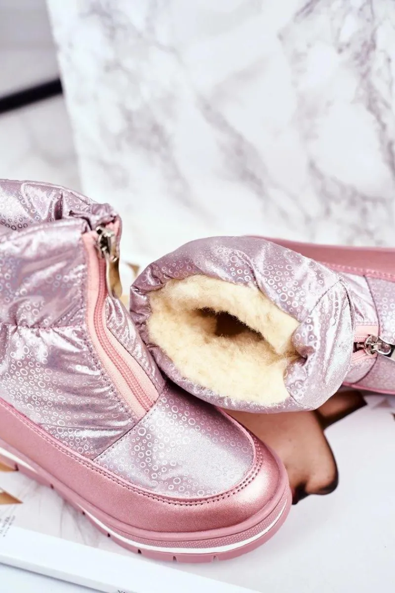 Sale Dziecięce Śniegowce Ocieplane Wełną Różowe Bubbles Dzieci Dziewczęce