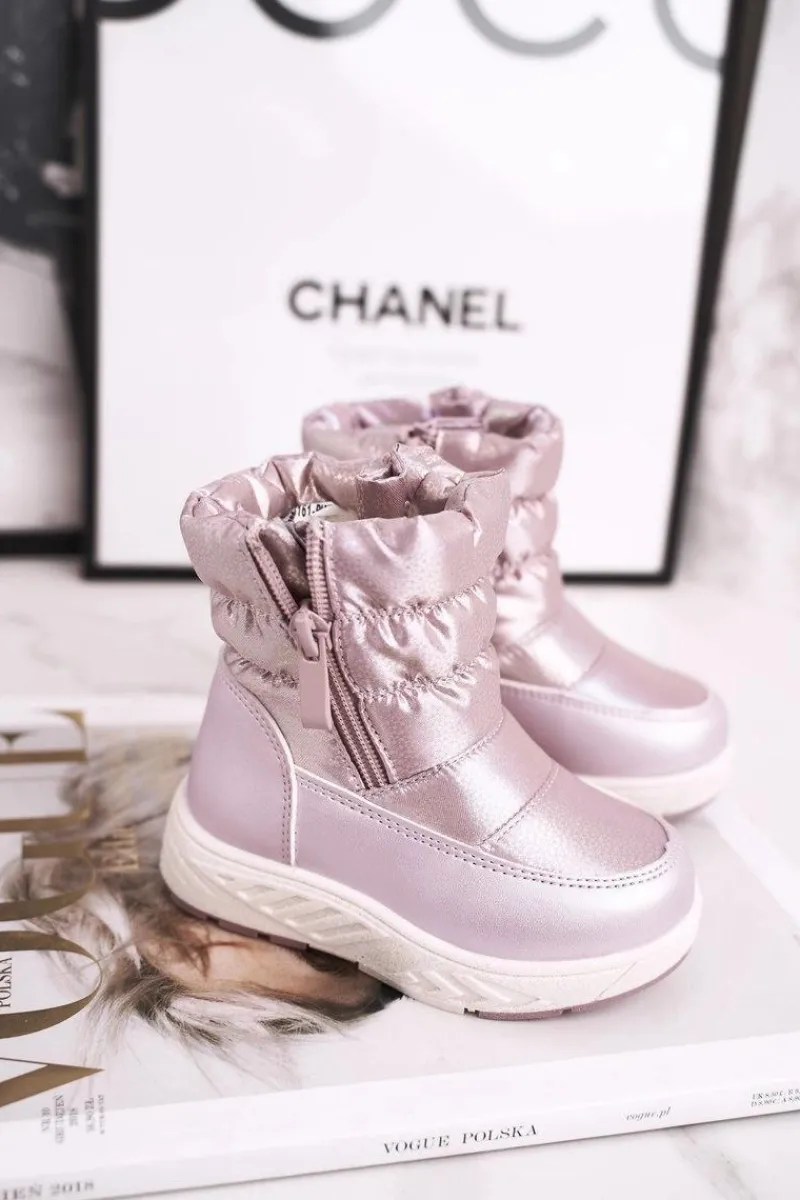 Sale Dziecięce Śniegowce Ocieplane Wełną Różowe Cruella Dzieci Dziewczęce