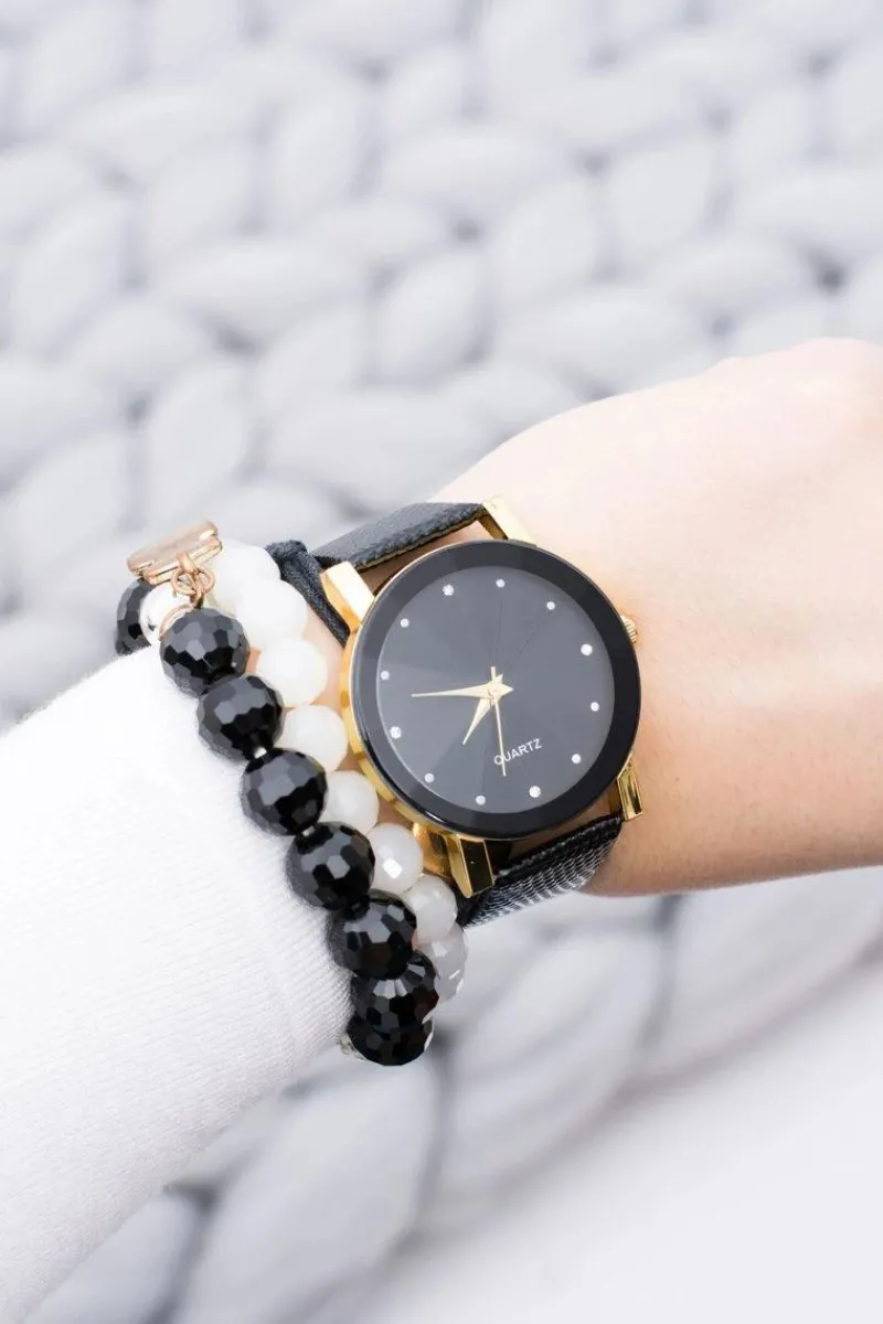 Stylowy damski zegarek! Czarny pasek wraz z gustowną i elegancką kopertą to coś czego potrzebujesz! Minimalistyczne wskazówki oraz godziny spodobają się każdej kobiecie! Kup teraz w świetnej cenie!
