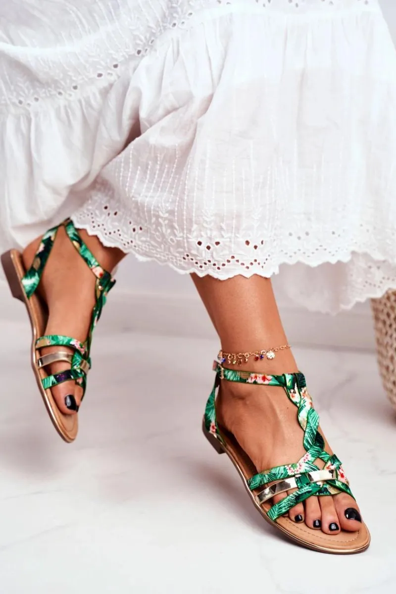 Eleganckie sandały ozdobione modnym wzorem. Buty zostały wykonane z wysokiej jakości skóry ekologicznej. Przy wyborze rozmiaru, prosimy sugerować się tabelą rozmiarów.