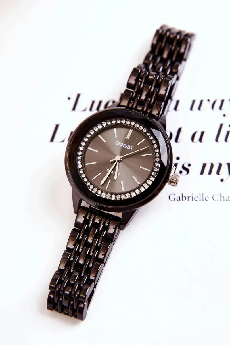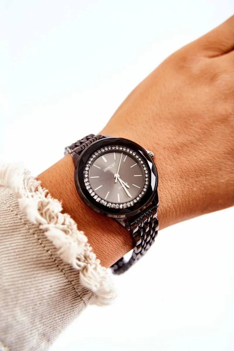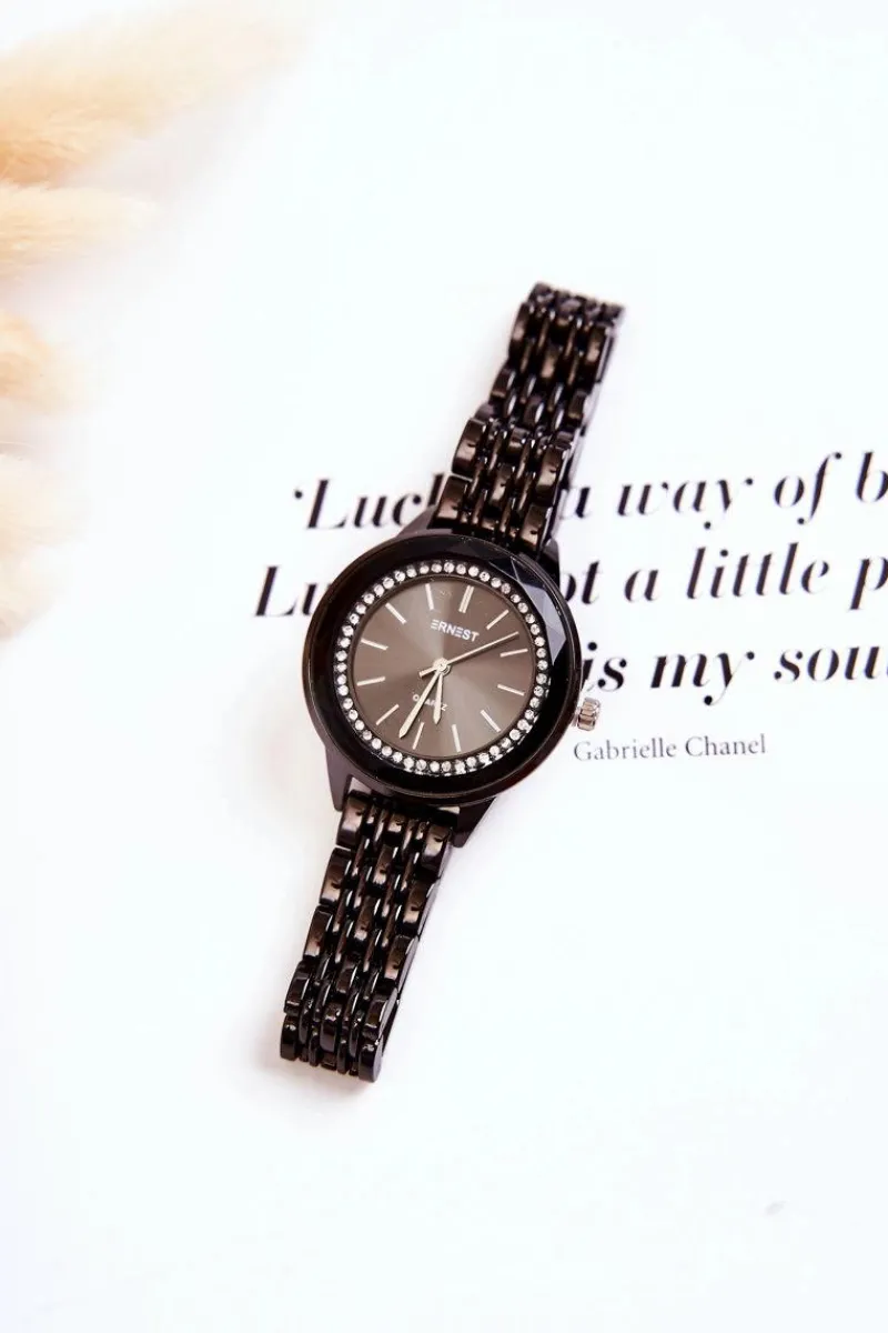 Piękny zegarek na bransolecie. Zegarek marki ERNEST wykonany ze stali nierdzewnej. Zapinany na zatrzask. Tarczę z dżetami imitującymi cyrkonie. Koniecznie powinnaś go mieć! Oferta obejmuje tylko i wyłącznie zegarek , bez dodatków widocznych na zdjęciu.