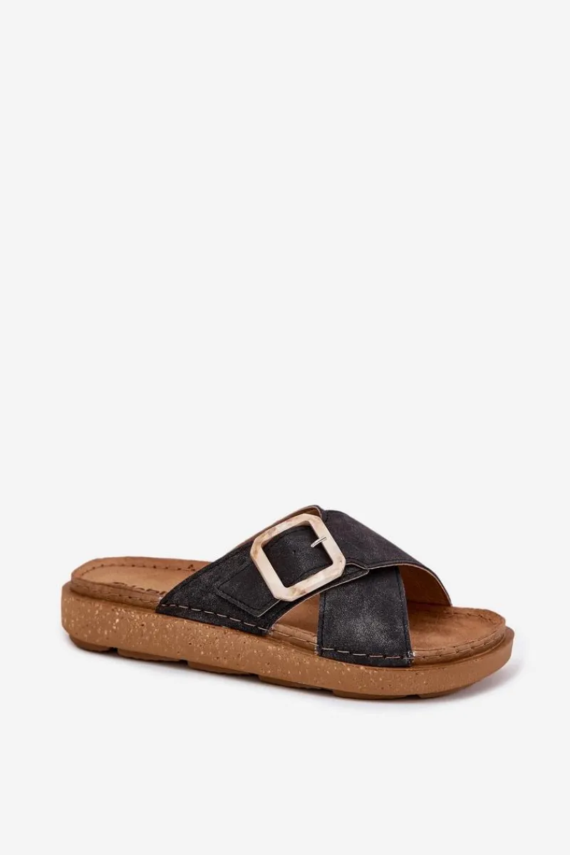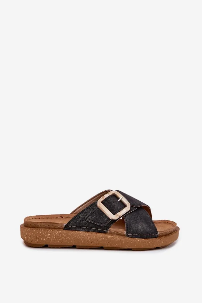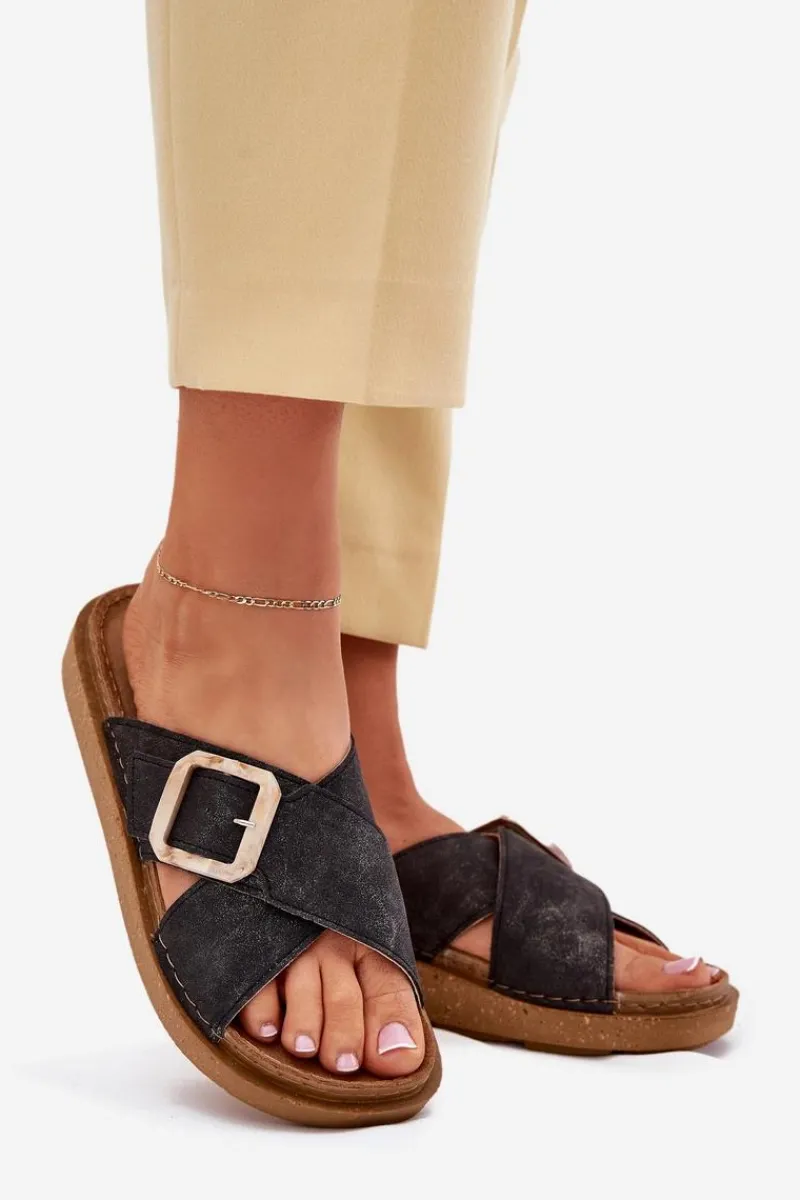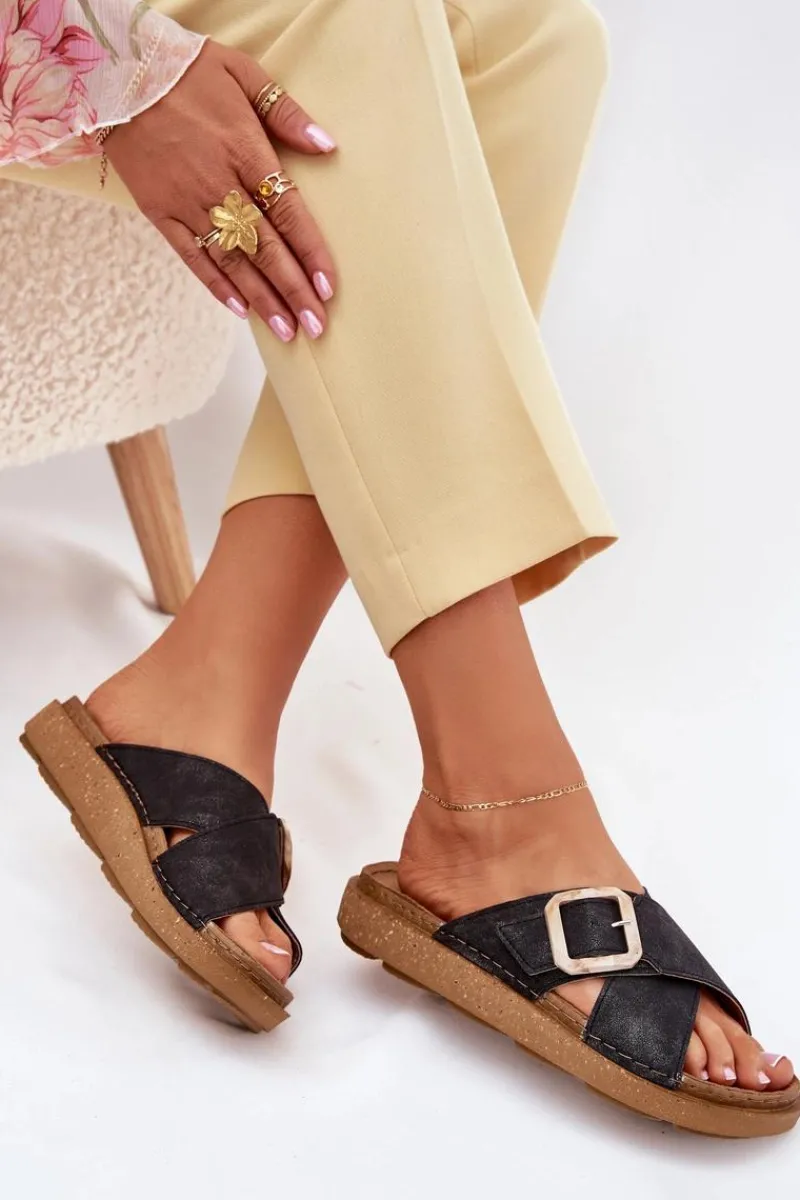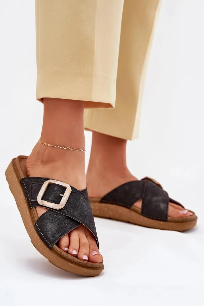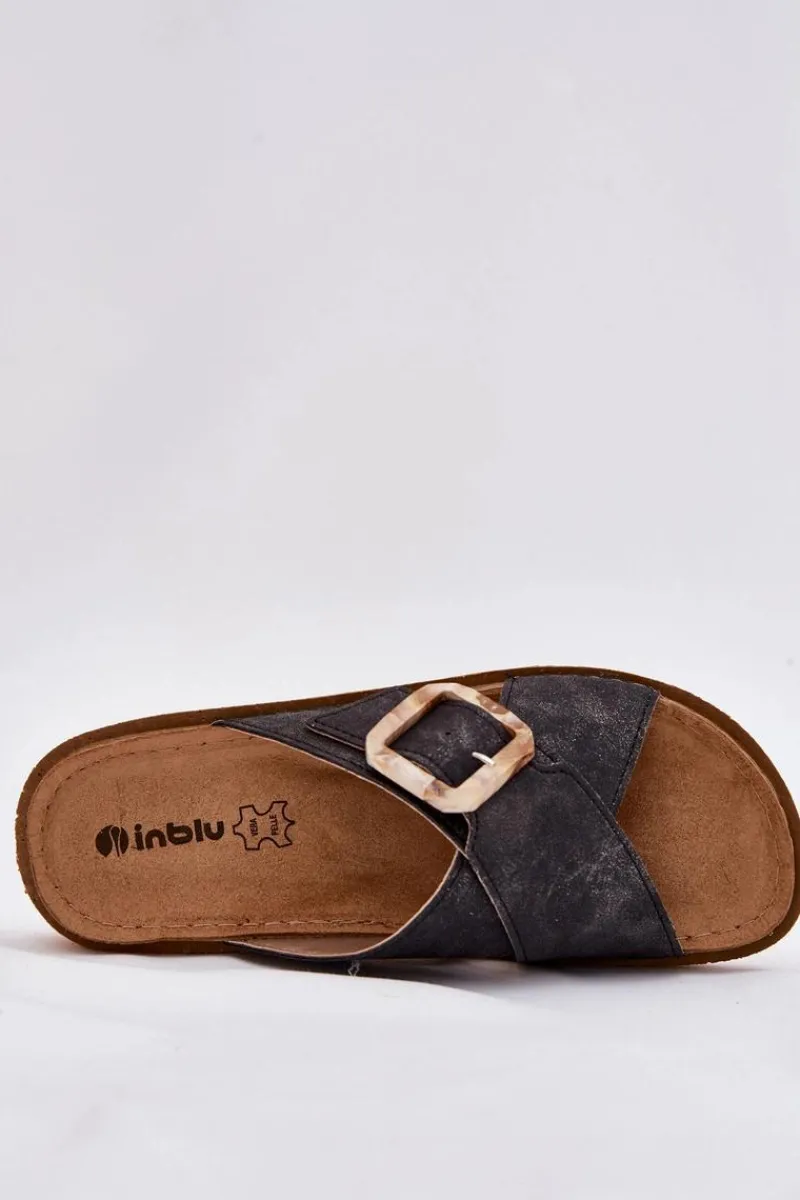 Klapki damskie od marki INBLU. Wykonane z eko skóry. Osadzone na platformie. Model ten posiada regulowany pasek z klamrą, co zapewni doskonałe dopasowanie do stopy. Wkładka wewnętrzna „COMFORT ANATOMICO” profilowana, dostosowana do kształtu anatomicznego stopy, wykonana z miękkiej, naturalnej skóry. Spód dwuwarstwowy wykonany z lekkiego i elastycznego tworzywa – poliuretanu – zapewnia sprężystość i bardzo dobre przenoszenie obciążeń na podłoże. Przy wyborze rozmiaru prosimy sugerować się tabelą rozmiarów.