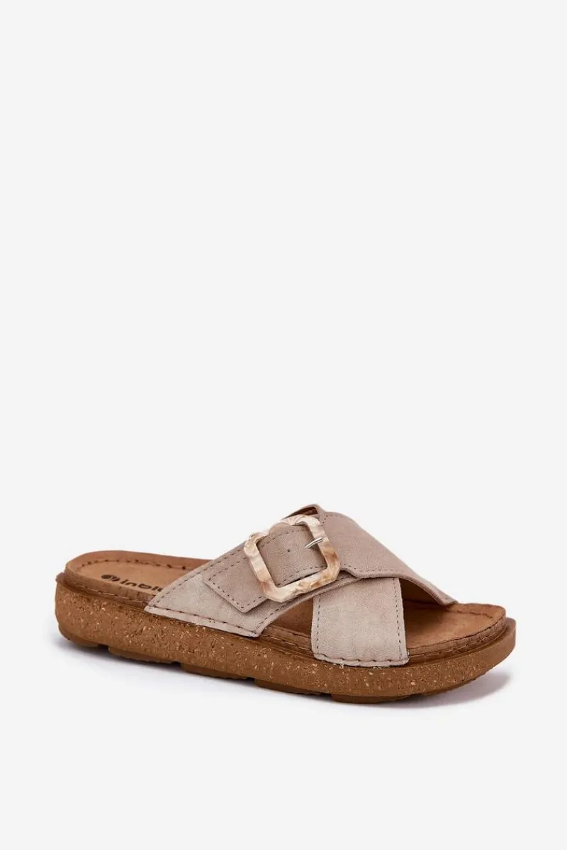 Klapki damskie od marki INBLU. Wykonane z eko skóry. Osadzone na platformie. Model ten posiada regulowany pasek z klamrą, co zapewni doskonałe dopasowanie do stopy. Wkładka wewnętrzna „COMFORT ANATOMICO” profilowana, dostosowana do kształtu anatomicznego stopy, wykonana z miękkiej, naturalnej skóry. Spód dwuwarstwowy wykonany z lekkiego i elastycznego tworzywa – poliuretanu – zapewnia sprężystość i bardzo dobre przenoszenie obciążeń na podłoże. Przy wyborze rozmiaru prosimy sugerować się tabelą rozmiarów.