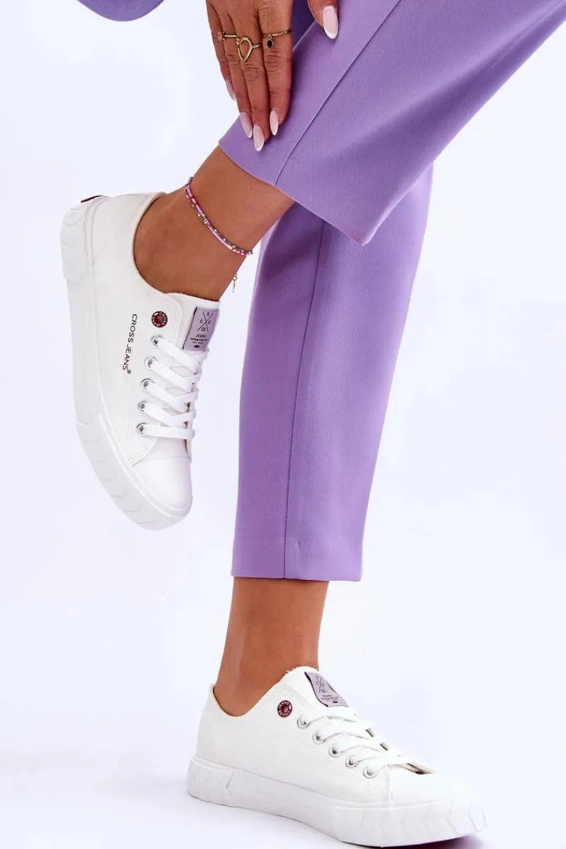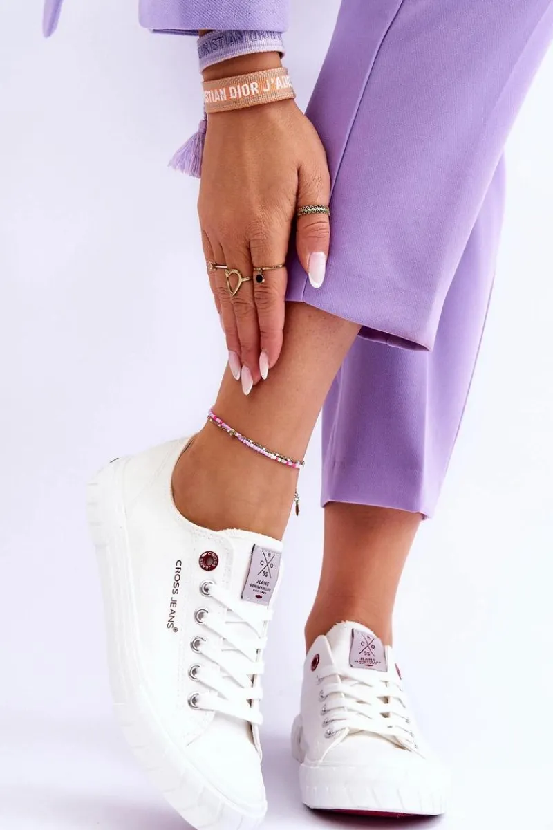 Świetne, klasyczne trampki marki Cross Jeans. Buty idealnie dopasowują się do kształtu stopy, dzięki materiałowej cholewce. Posiadają miękką wkładkę oraz antypoślizgową podeszwę. Klasyczny, sznurowany model, który łatwo dopasujesz do tęgości stopy. Buty posiadają wzmocniony, gumowy nosek oraz usztywniany zapiętek. Na boku znajduje się logo marki Cross Jeans. Przy wyborze rozmiaru prosimy sugerować się tabelą rozmiarów.