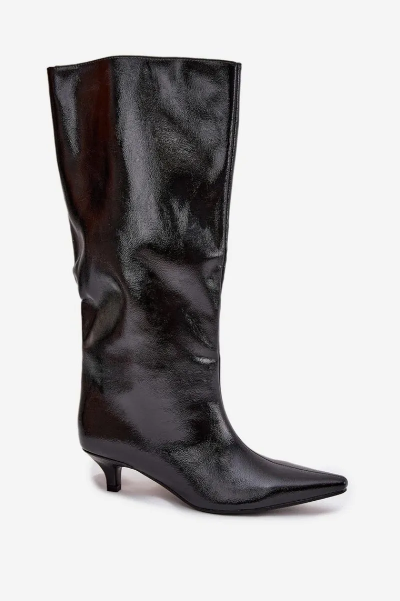 Kozaki damskie wykonane z eko skóry to elegancka propozycja na sezon jesienno-zimowy. Model wsuwany z dodatkowym suwakiem na dole cholewki ułatwia zakładanie. Wnętrze ocieplane kocem obuwniczym zapewnia komfort i ciepło podczas chłodniejszych dni, dzięki czemu buty świetnie sprawdzą się w codziennym użytkowaniu. Szpiczaste noski dodają całości smukłego, kobiecego charakteru, a niski obcas zapewnia wygodę i stabilność przy każdym kroku. To uniwersalne kozaki, które znakomicie uzupełnią zarówno casualowe stylizacje z jeansami, jak i eleganckie zestawy z sukienką czy spódnicą. Przy wyborze rozmiaru prosimy kierować tabelą rozmiarów.