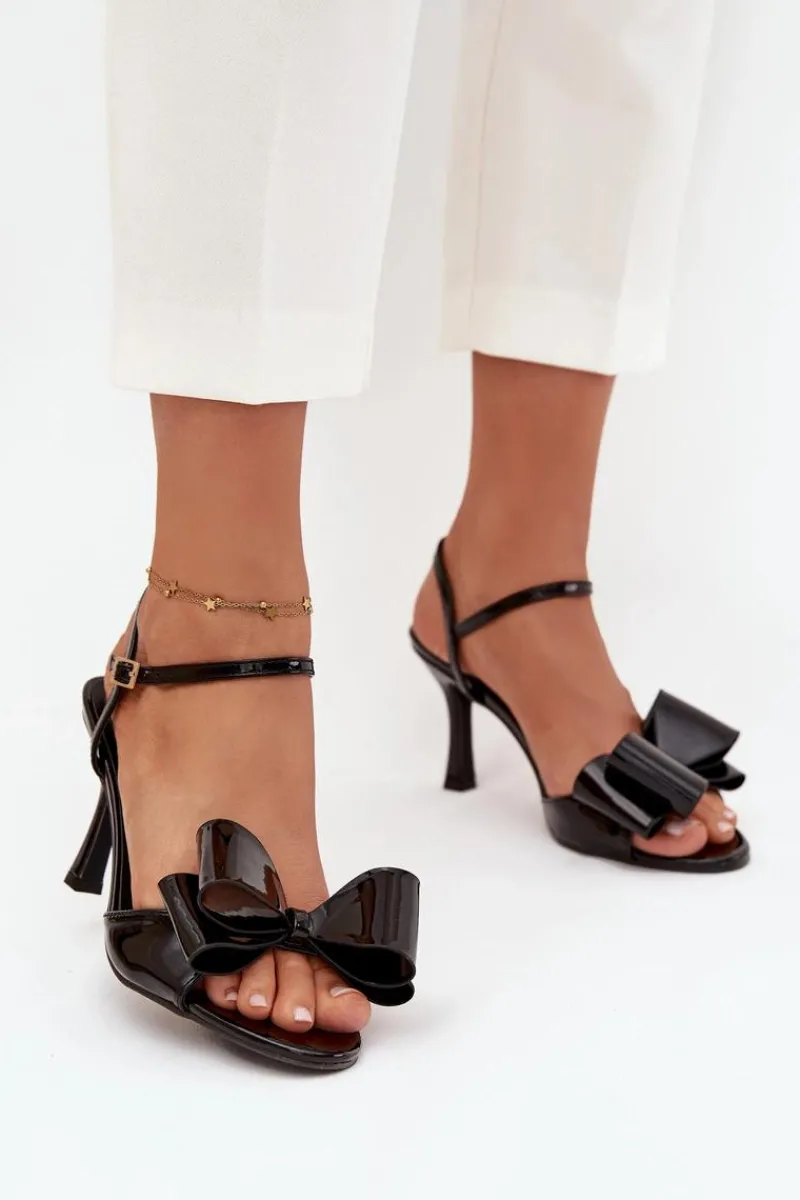 Sandały damskie wykonane z wysokiej jakości eko skóry to połączenie elegancji i kobiecego stylu. Osadzone na smukłej szpilce pięknie wydłużają sylwetkę i dodają lekkości każdej stylizacji. Regulowany pasek zapinany na sprzączkę umożliwia idealne dopasowanie do stopy. Uwagę przyciąga ozdobna kokarda umieszczona z przodu, która nadaje subtelnego, dziewczęcego uroku. To model, który doskonale sprawi się zarówno na wyjątkowe okazje, takie jak przyjęcia czy uroczystości, jak i do eleganckich, wieczorowych stylizacji. Przy wyborze rozmiaru prosimy sugerować się tabelą rozmiarów.