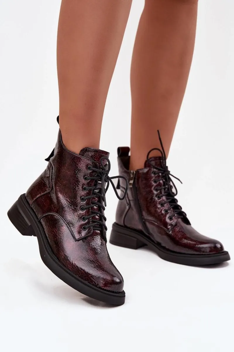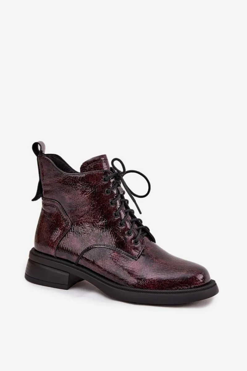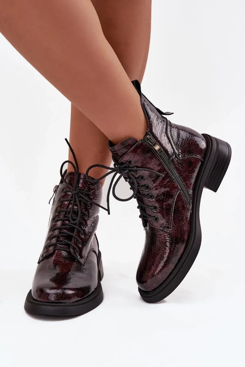 Botki damskie wykonane z naturalnej, lakierowanej skóry to elegancka propozycja na chłodniejsze dni. Niski obcas w formie klocka zapewnia stabilność i wygodę podczas noszenia. Model posiada sznurowanie oraz praktyczny zamek, co pozwala na łatwe zakładanie i idealne dopasowanie do stopy. Wnętrze ocieplone kocem obuwniczym gwarantuje komfort termiczny, dzięki czemu botki świetnie sprawdzą się w sezonie jesienno-zimowym. To uniwersalne obuwie, które doskonale uzupełni zarówno codzienne, jak i bardziej formalne stylizacje. Przy wyborze rozmiaru prosimy sugerować się tabelą rozmiarów.