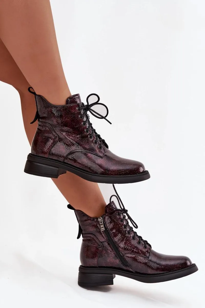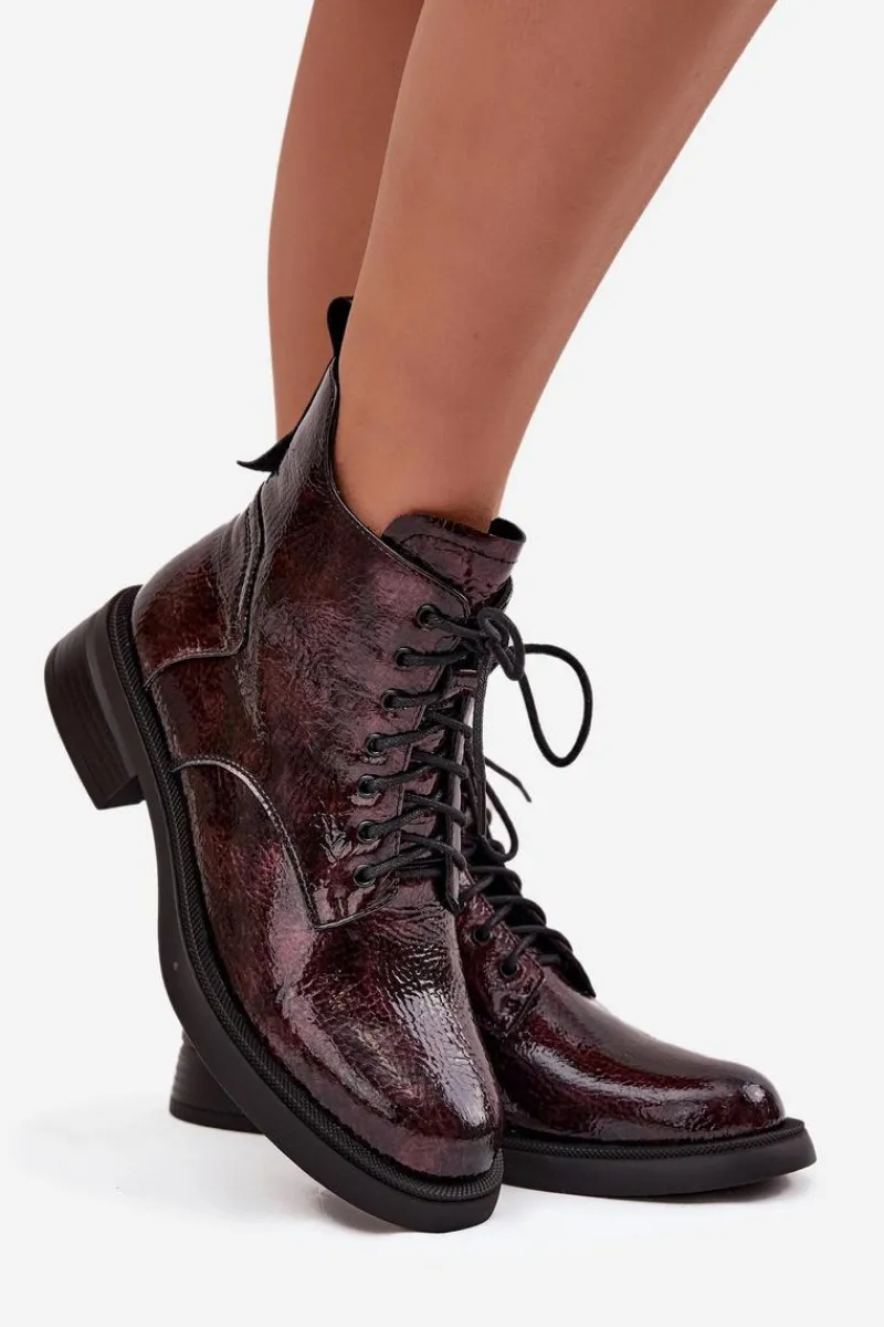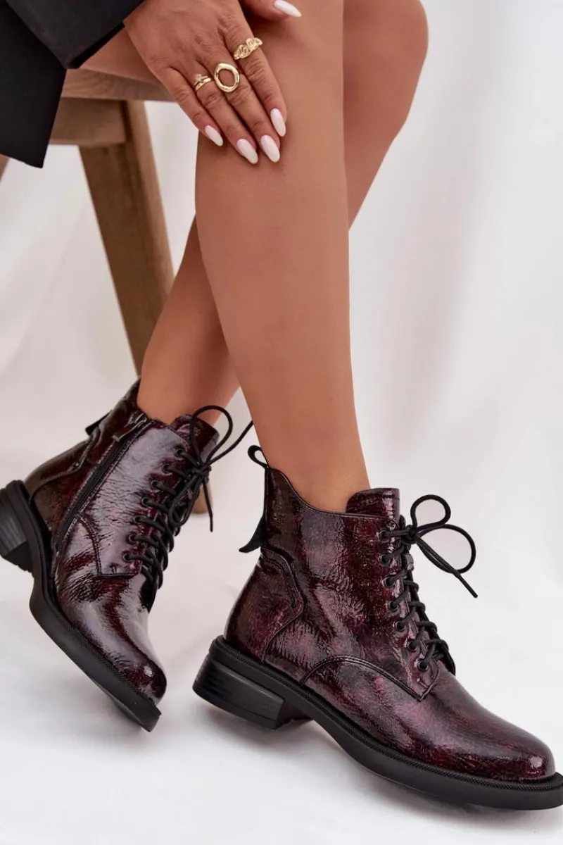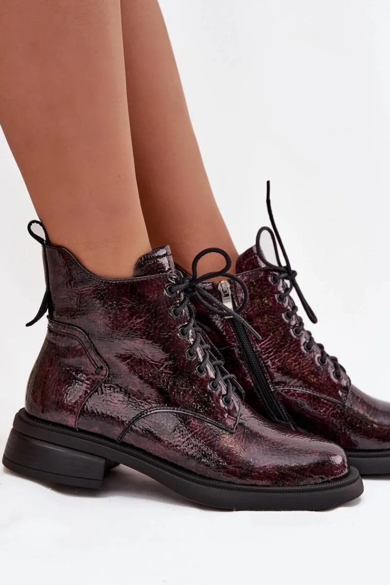 Botki damskie wykonane z naturalnej, lakierowanej skóry to elegancka propozycja na chłodniejsze dni. Niski obcas w formie klocka zapewnia stabilność i wygodę podczas noszenia. Model posiada sznurowanie oraz praktyczny zamek, co pozwala na łatwe zakładanie i idealne dopasowanie do stopy. Wnętrze ocieplone kocem obuwniczym gwarantuje komfort termiczny, dzięki czemu botki świetnie sprawdzą się w sezonie jesienno-zimowym. To uniwersalne obuwie, które doskonale uzupełni zarówno codzienne, jak i bardziej formalne stylizacje. Przy wyborze rozmiaru prosimy sugerować się tabelą rozmiarów.