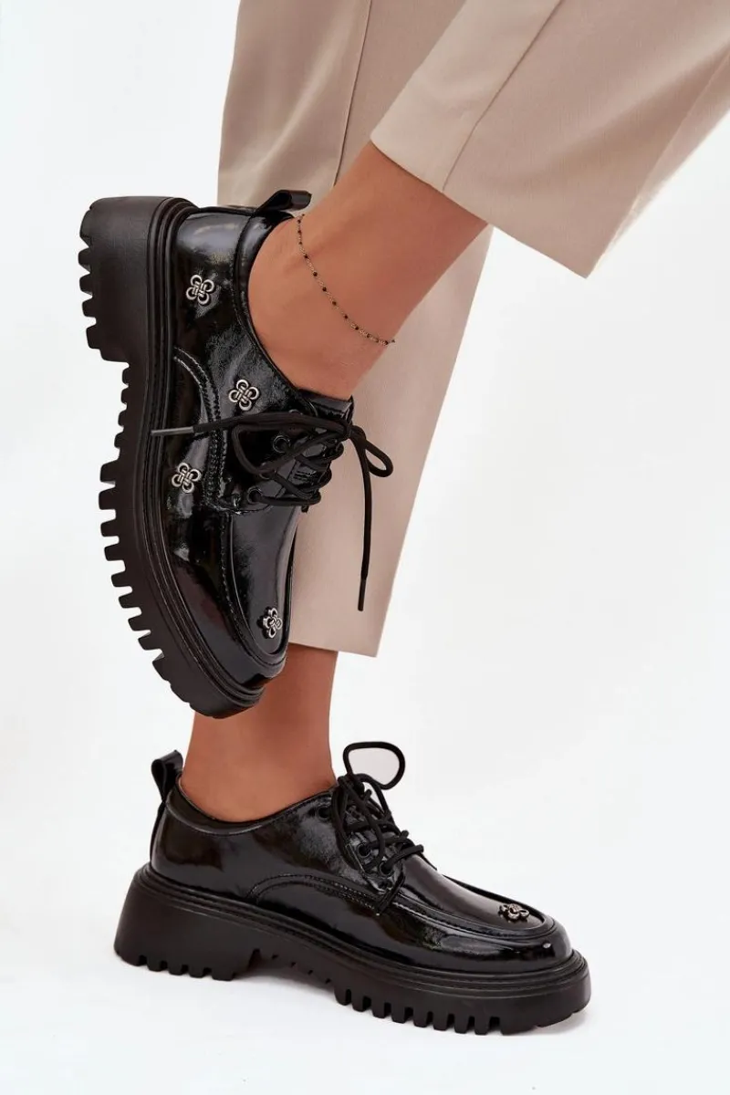 Półbuty damskie marki Artiker wykonane z naturalnej skóry. Osadzone na platformie z płaskim obcasem zapewniają komfort noszenia przez cały dzień. Klasyczne sznurowanie gwarantuje dobre dopasowanie, a urocze przypinki dodają oryginalnego i dziewczęcego charakteru. To idealny model do codziennych stylizacji. Przy wyborze rozmiaru prosimy sugerować się tabelą rozmiarów.
