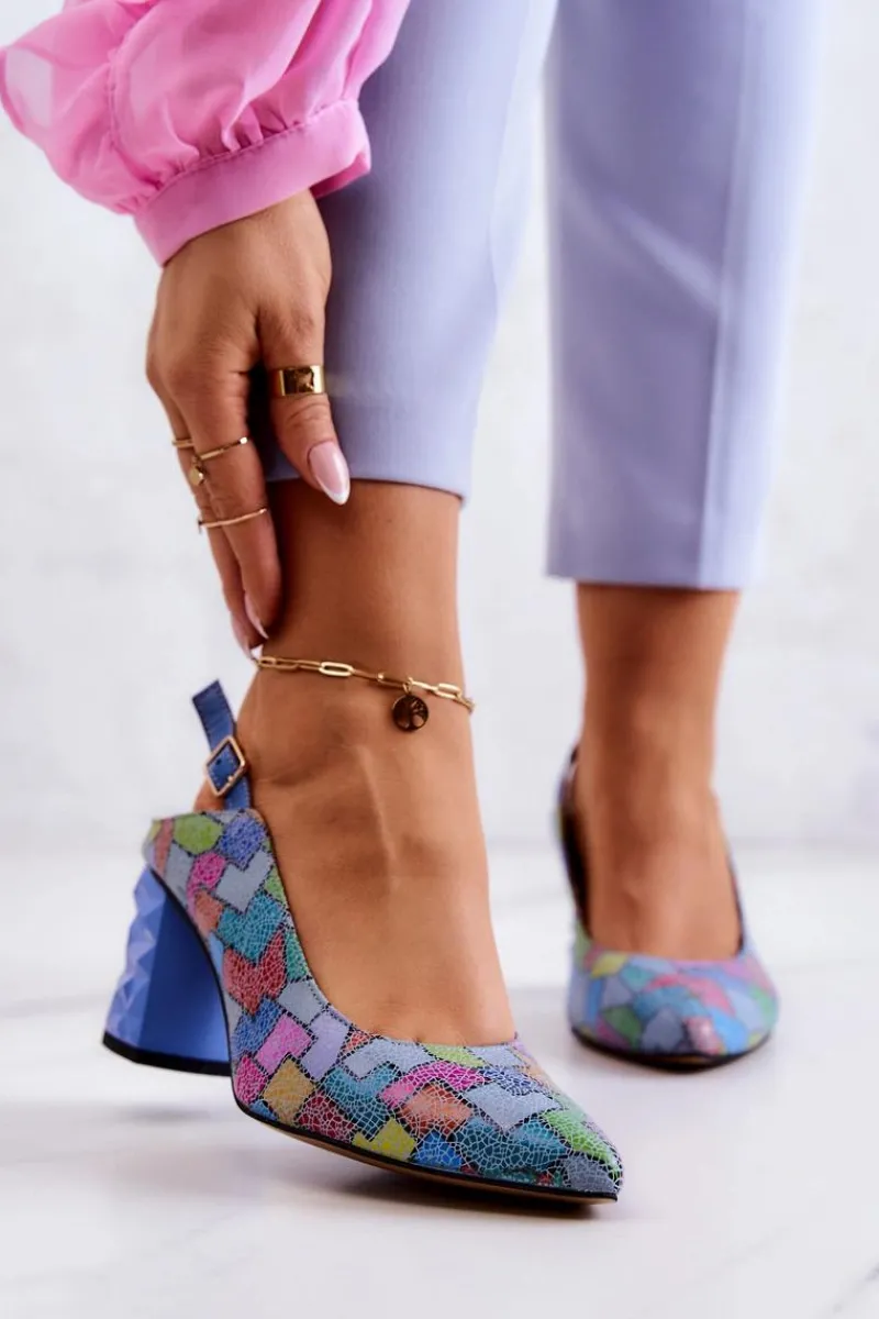 Cudowne czółenka dla wyjątkowej kobiety! Zostały wykonane z dbałością o szczegóły z naturalnej skóry. Posiadają regulowany paseczek zapinany przy kostce na sprzączkę. Nosek w szpic. Obcas w postaci słupka zapewni stabilność. Miękka, skórzana wkładka to gwarancja komfortu, nawet podczas użytkowania przez długi czas! Te czółenka są idealne zarówno do pracy, na spotkania biznesowe czy różnego rodzaju uroczystości rodzinne. Koniecznie powinnaś je mieć! Przy wyborze rozmiaru prosimy sugerować się tabelą rozmiarów.