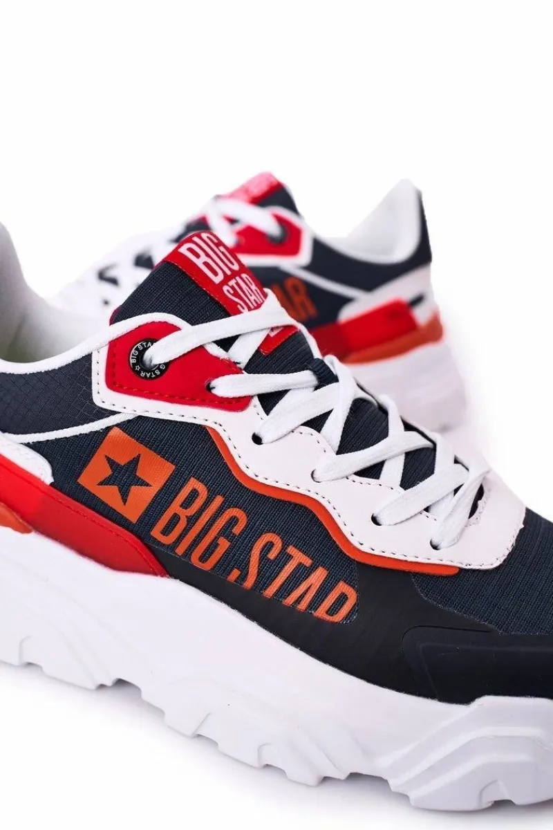 Sale Męskie Sportowe Buty Memory Foam Big Star HH174207 Granatowo-Białe Męskie Trampki Męskie Big Star|Obuwie Sportowe Męskie