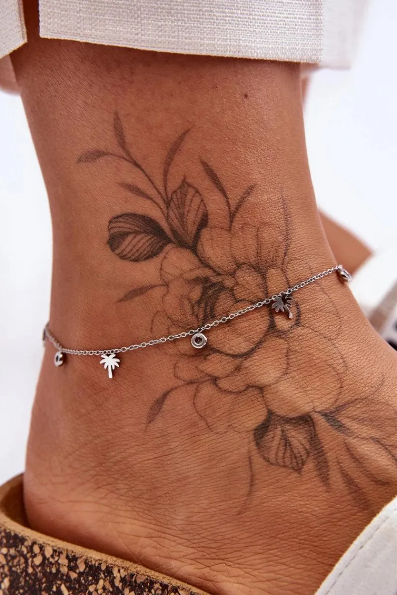 Damska bransoletka na nogę jest idealnym dodatkiem do wielu stylizacji! Została wykonana ze stali nierdzewnej. Cienki łańcuszek o splocie ankier posiada ozdobne elementy w postaci zawieszek i dżetów imitujących cyrkonie. Bransoletka posiada możliwość regulacji i jest zapinana na karabińczyk.
