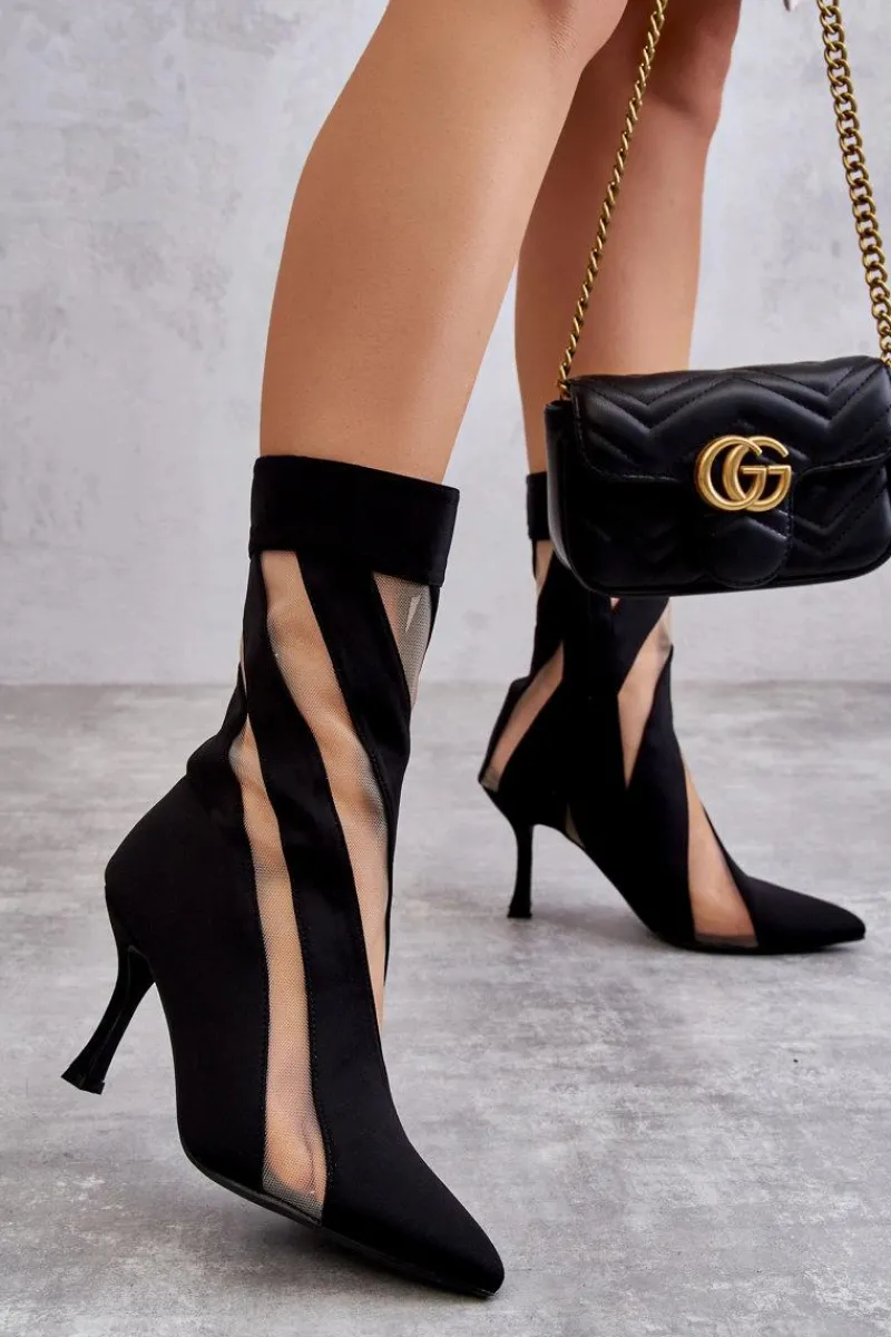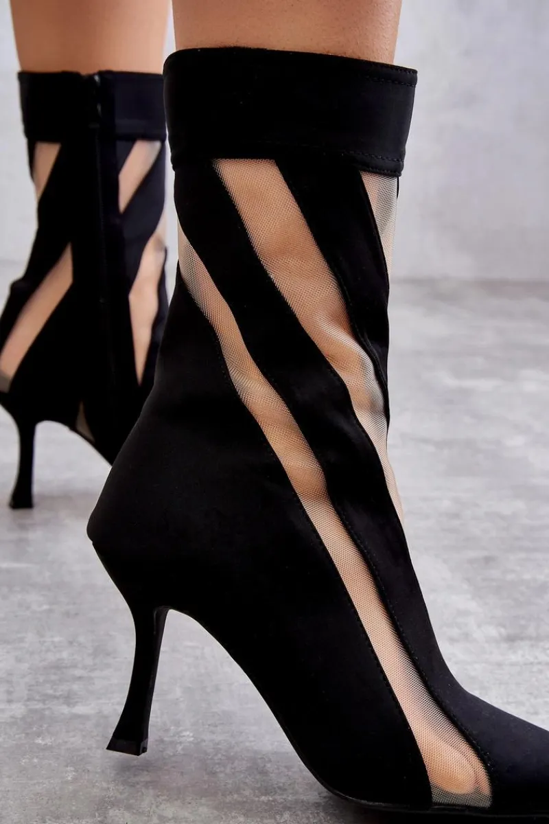 Wyjątkowe, damskie botki to HIT tego sezonu! Świetny fason z ciekawym, modnym wzorem na całości cholewki. Botki zostały wykonane z połączenia materiału oraz tworzywa sztucznego. Model z noskiem w szpic i obcas w postaci szpilki optycznie wysmuklą nogi. Zamykane z boku cholewki na suwak. Przy wyborze rozmiaru prosimy sugerować się tabelą rozmiarów.