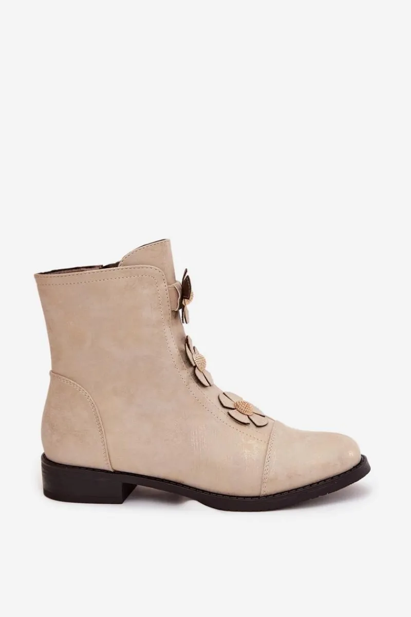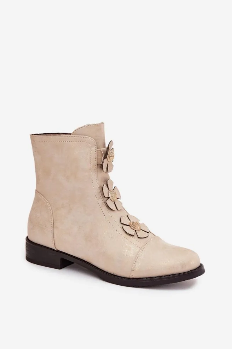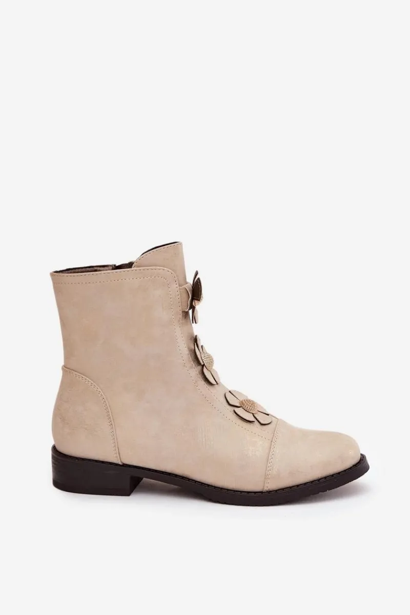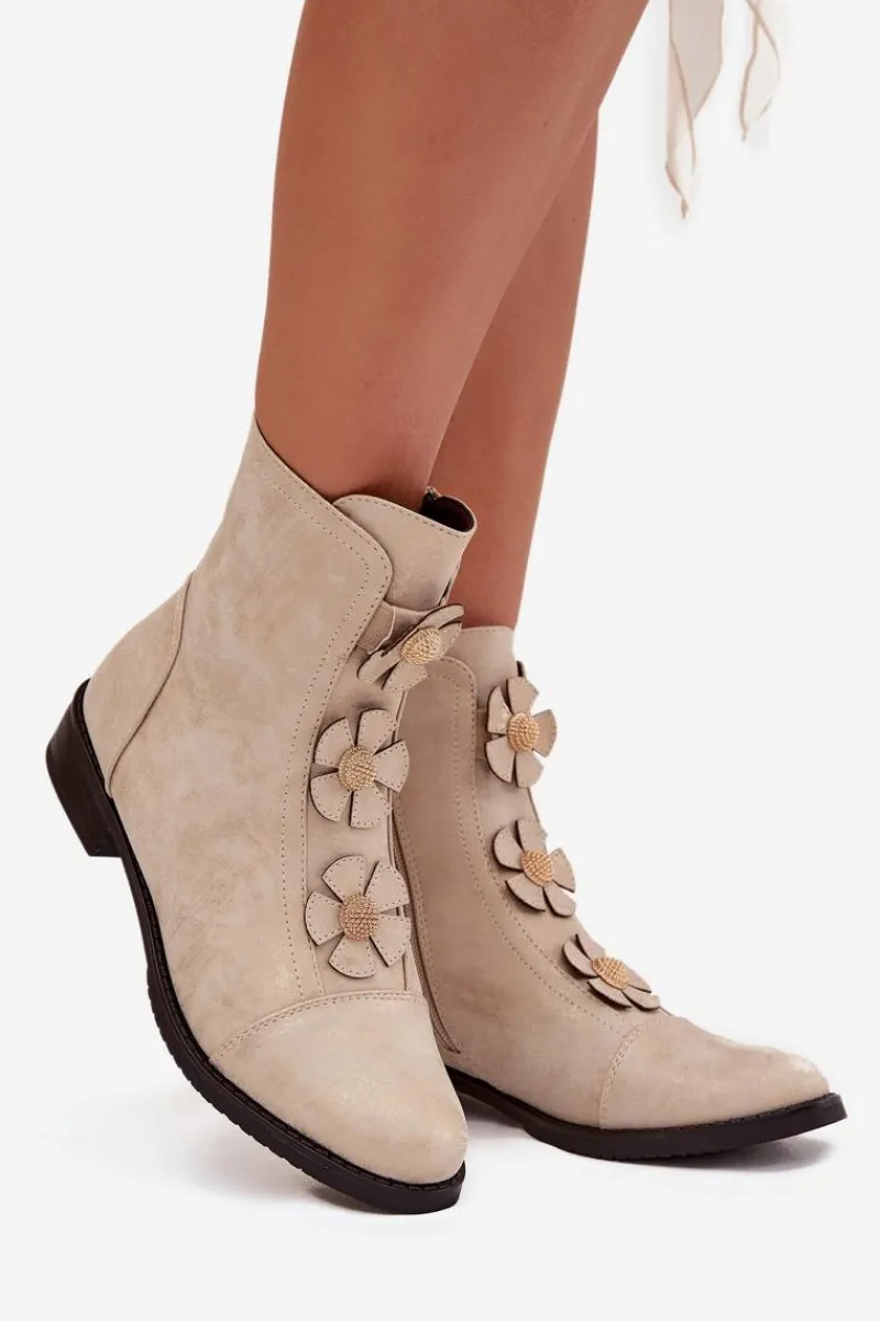 Botki damskie marki Jezzi to propozycja, która łączy wygodę z subtelną elegancją. Wykonane z wysokiej jakości eko skóry prezentują się stylowo i są łatwe w codziennym użytkowaniu. Osadzone na płaskim obcasie zapewniają komfort noszenia przez cały dzień, a praktyczny zamek ułatwia zakładanie i zdejmowanie. Uwagę przyciągają trzy ozdobne kwiatki umieszczone z przodu cholewki, które dodają dziewczęcego uroku i sprawiają, że model wyróżnia się na tle klasycznych fasonów. To botki idealne na co dzień – wygodne, praktyczne i jednocześnie pełne stylowych detali. Przy wyborze rozmiaru prosimy sugerować się tabelą rozmiarów.