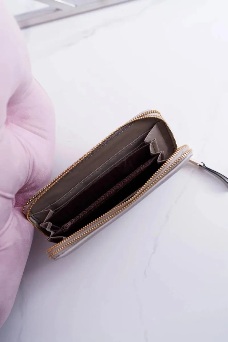 Przedstawiamy piękne portfele dla eleganckich Pań, dostępne w kilku cudownych kolorach. Produkty te charakteryzuje wyjątkowa prostota i elegancją. Wykonywane są przy użyciu najwyższej klasy materiałów. Staranne i piękne wykończenie każdego portfela oddaje niesamowitą dbałość o detale oraz modowy gust. Portfel posiada zapinanie na złoty suwak. Pięknym zdobieniem jest przeszycie złotym suwakiem wokół portfela. Wewnątrz znajdują się trzy duże komory z czego jedna zapinana jest na zamek oraz dużo kieszonek na karty.