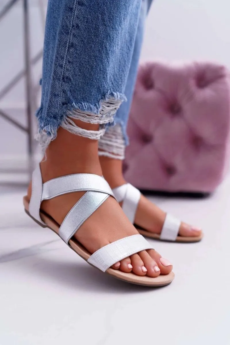 Sale Sandały Damskie Eleganckie Srebrne Carme Damskie Sandały Płaskie