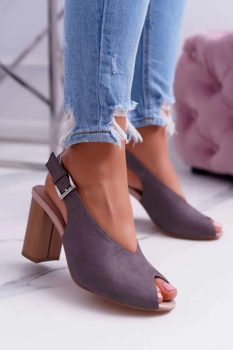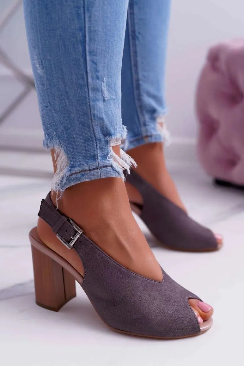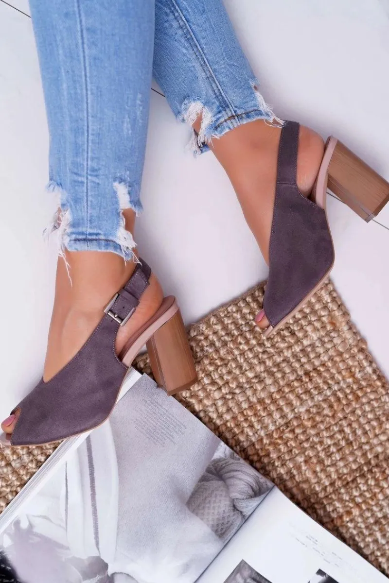 Sale Sandały Damskie Zamszowe Ciemnoszare Celian Damskie Sandały Na Obcasie