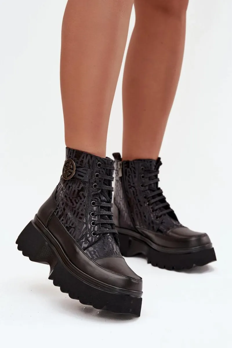 Botki damskie marki Artiker to stylowe obuwie stworzone z myślą o chłodniejszych dniach. Wykonane z naturalnej skóry, wyróżniają się solidnością i modnym wyglądem. Osadzone na stabilnej platformie, zapewniają komfort noszenia i nowoczesny wygląd. Model posiada zarówno sznurowanie, jak i praktyczny zamek, co ułatwia zakładanie oraz dopasowanie do stopy. Cholewkę zdobią modne napisy oraz pasek z ozdobnym detalem. Wnętrze ocieplone sprawia, że świetnie sprawdzą się w sezonie jesienno-zimowym. Przy wyborze rozmiaru prosimy sugerować się tabelą rozmiarów.