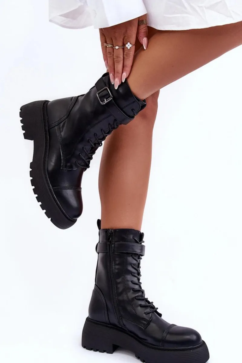 Workery damskie z wyższą cholewką. Osadzone na masywnym, płaskim obcasie oraz platformie. Zapinanie na suwak. Środek ocieplony kocem obuwniczym. Noski zaokrąglone. Świetny model do jesiennych i zimowych stylizacji! Przy wyborze rozmiaru prosimy sugerować się tabelą rozmiarów.