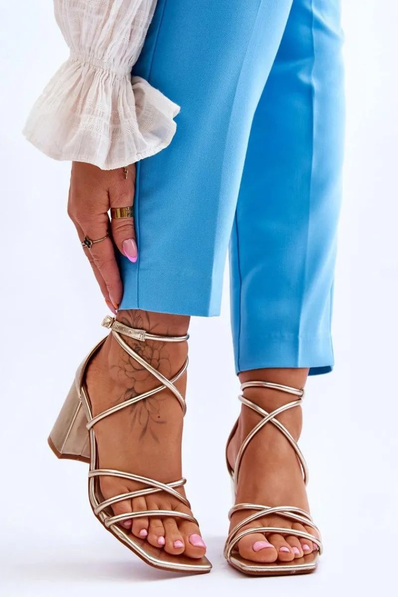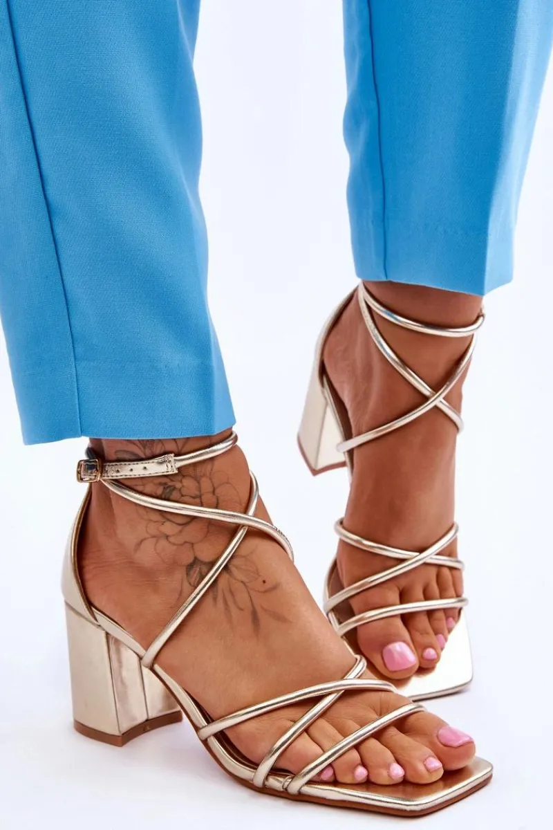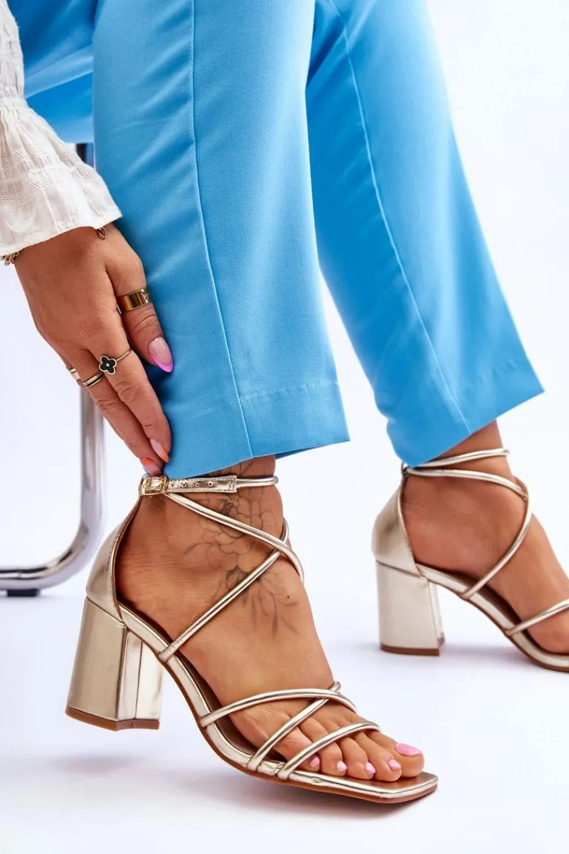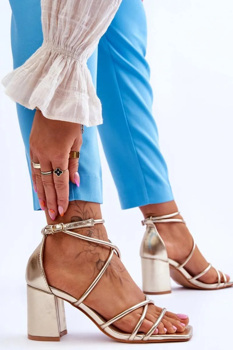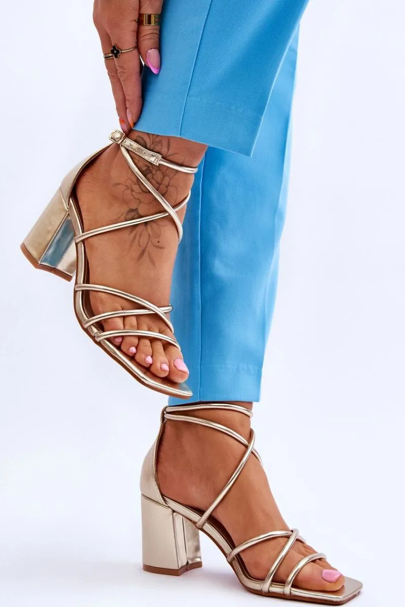 Modne sandałki na masywnym obcasie w postaci słupka zostały wykonane z eko skóry. Model ten posiada regulowany pasek zapinany na sprzączkę. Sandałki posiadają odkryty, kwadratowy nosek. Miękka wkładka została wykonana z eko skóry, co pozwoli na komfortowe użytkowanie obuwia. Idealny model do wielu stylizacji! Przy wyborze rozmiaru prosimy sugerować się tabelą rozmiarów.