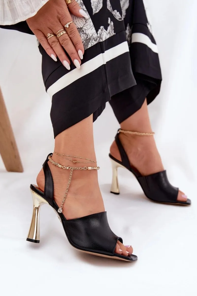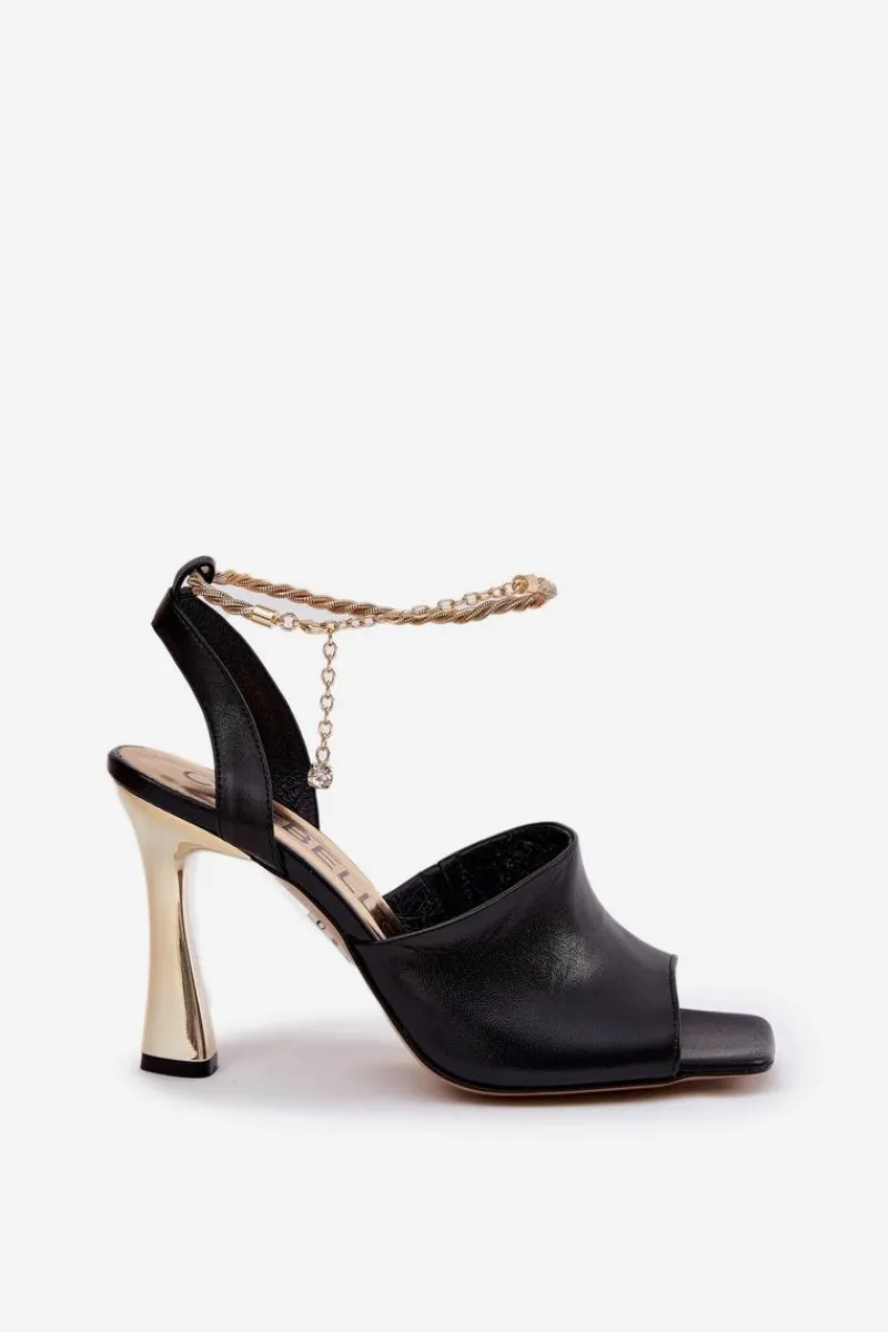 Sandały damskie od marki CheBello wykonane z wysokiej jakości naturalnej skóry. Osadzone na smukłej szpilce, z subtelną bransoletą wokół kostki, dodającą elegancji i szyku. Idealne na wyjątkowe okazje oraz wieczorne wyjścia, łączą w sobie styl, klasę i komfort noszenia. Przy wyborze rozmiaru prosimy sugerować się tabelą rozmiarów.