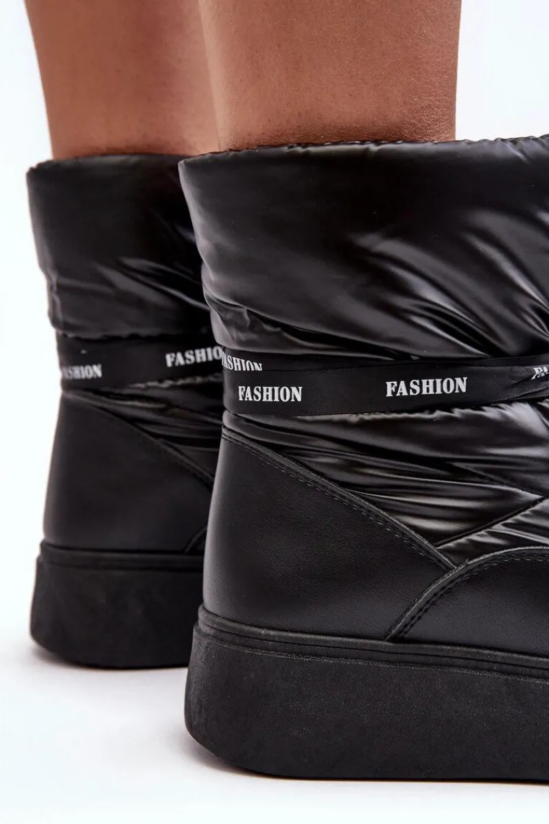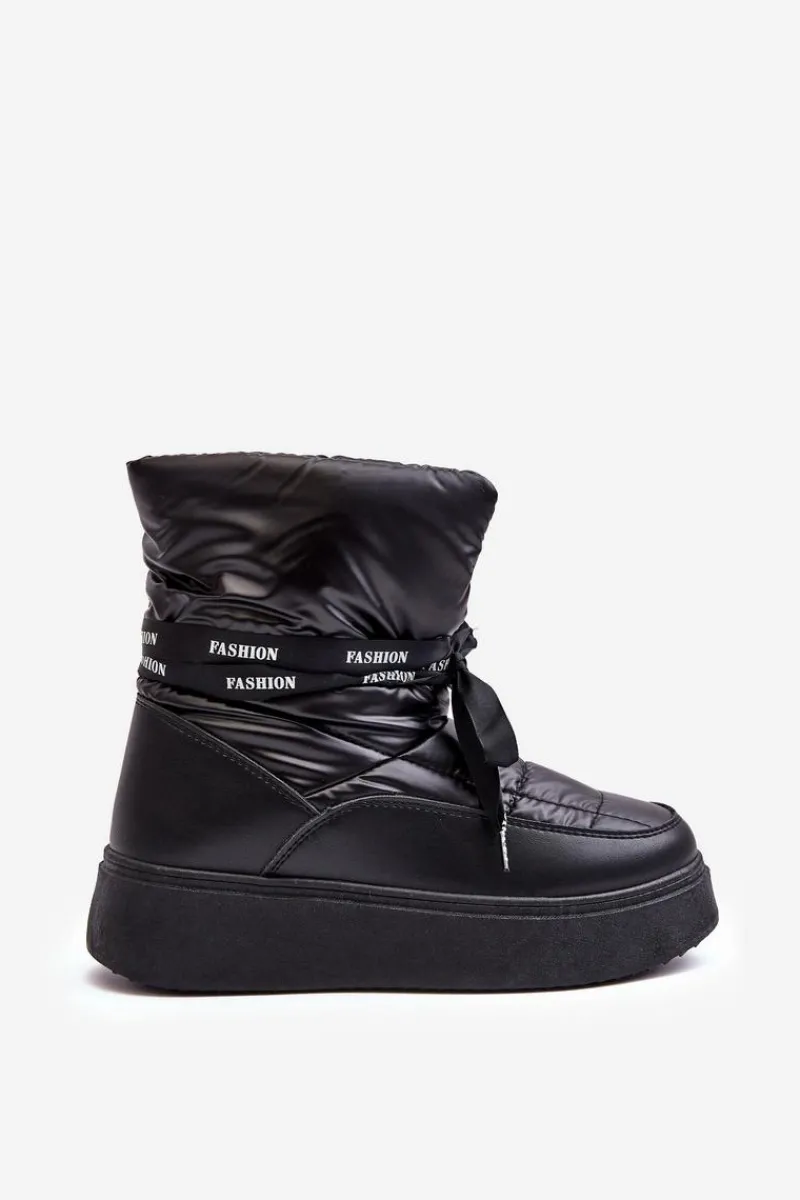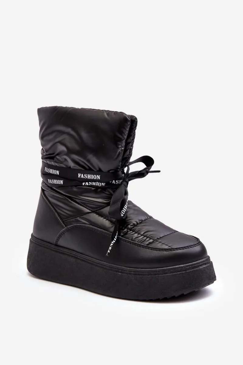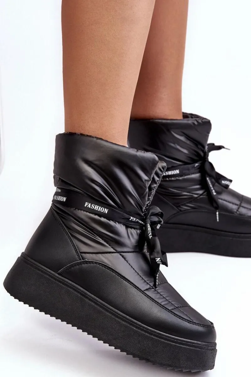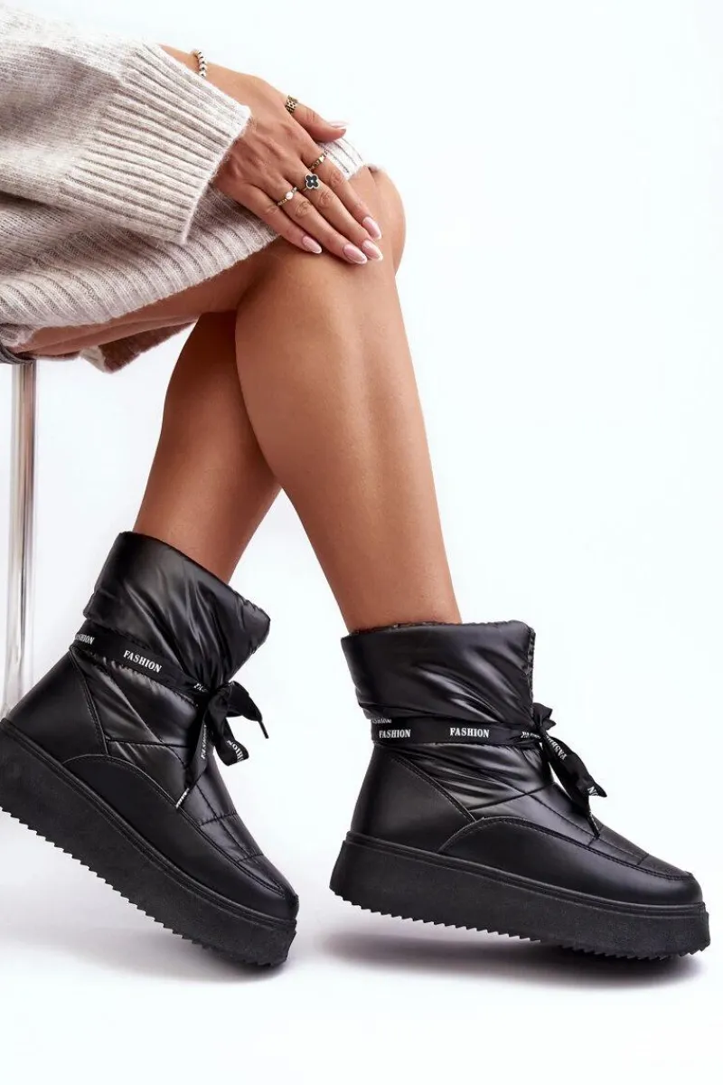 Stylowe, damskie śniegowce zostały wykonane z połączenia eko skóry i materiału tekstylnego. Osadzone na masywnej platformie. Wykonane z materiału tekstylnego. Grube ocieplenie w postaci futerka zapewni ochronę przed zimnem. Model wsuwany z ozdobnym wiązaniem na cholewce. Przy wyborze rozmiaru prosimy sugerować się tabelą rozmiarów.