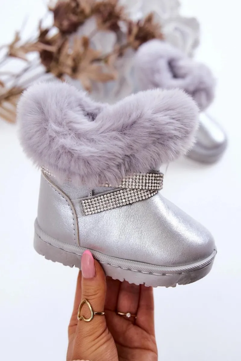 Podczas chłodnych dni warto zadbać o ciepłe obuwie dla pociech. Te modne śniegowce są idealną propozycją na takie dni! Botki ocieplone są przyjemnym w dotyku eko futerkiem. Model wsuwany. Na cholewce znajdują się ozdobne cyrkonie. Koniecznie sprawdź całą nasza kolekcję śniegowców dziecięcych! Przy wyborze rozmiaru prosimy kierować tabelą rozmiarów.