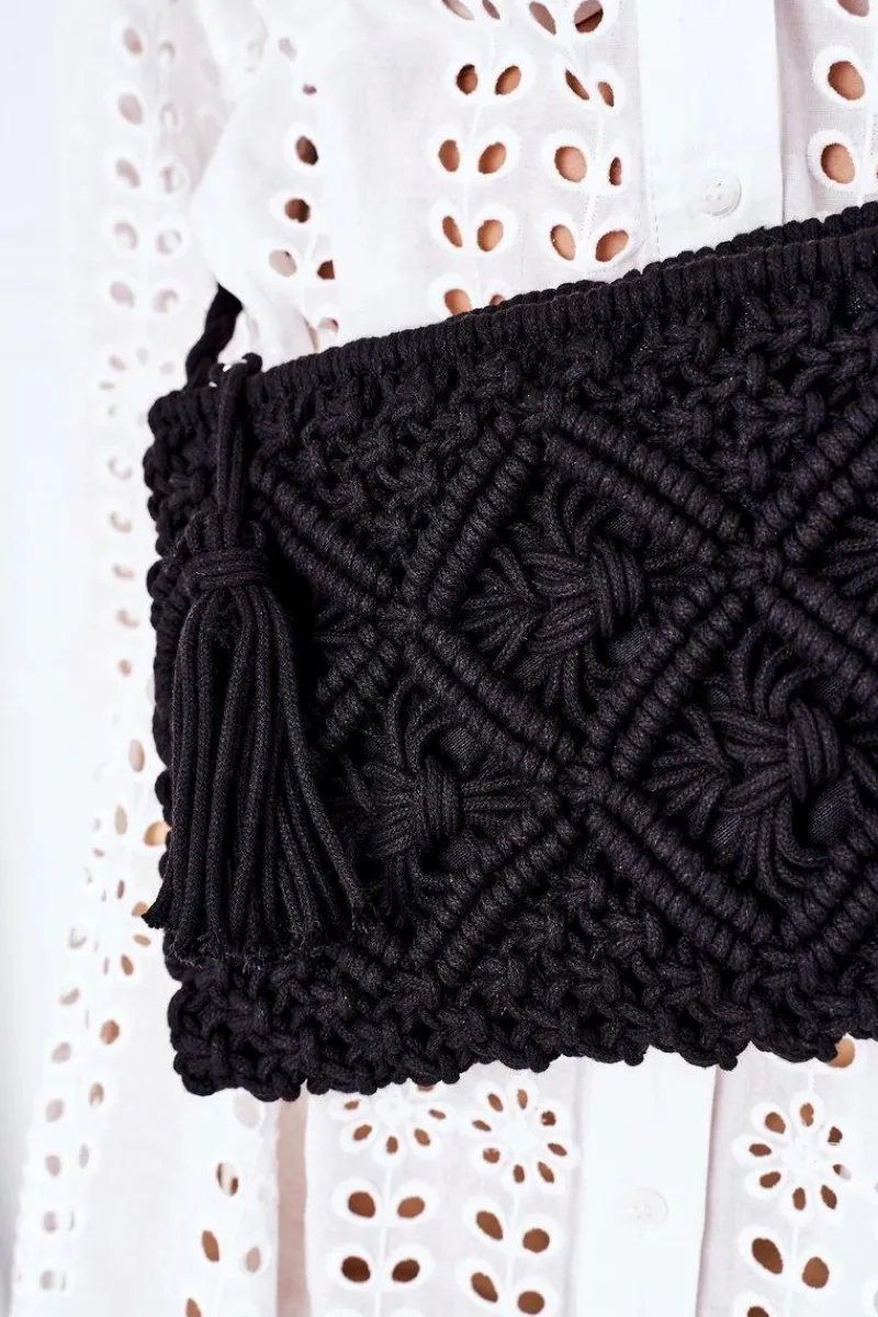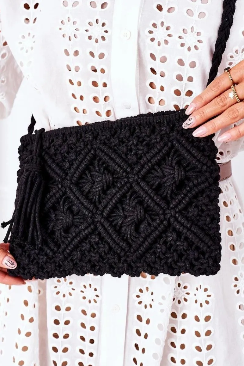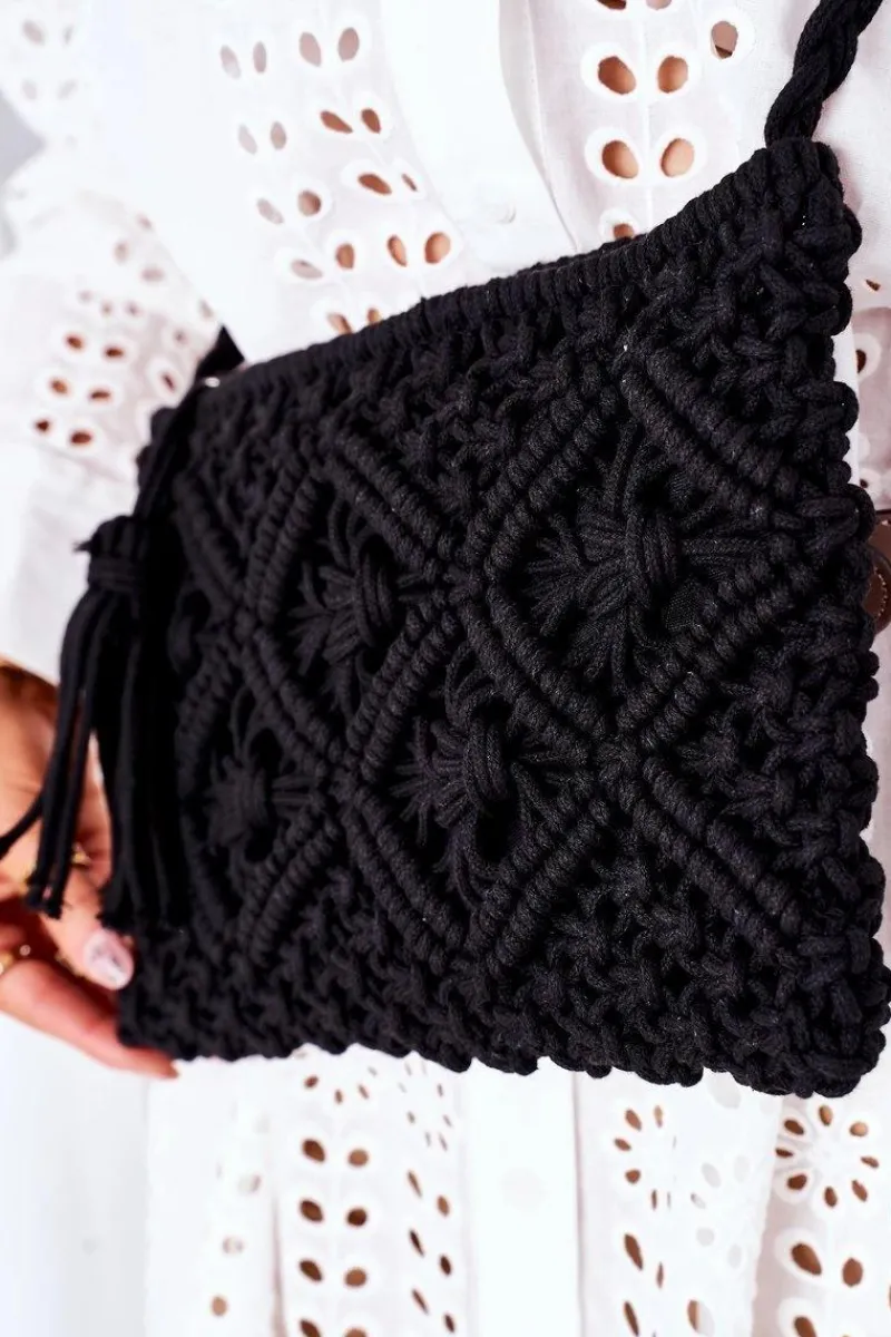 Sale Torebka Listonoszka Makrama BRUNO ROSSI Czarna Torebki Plażowe|Torebki Klasyczne