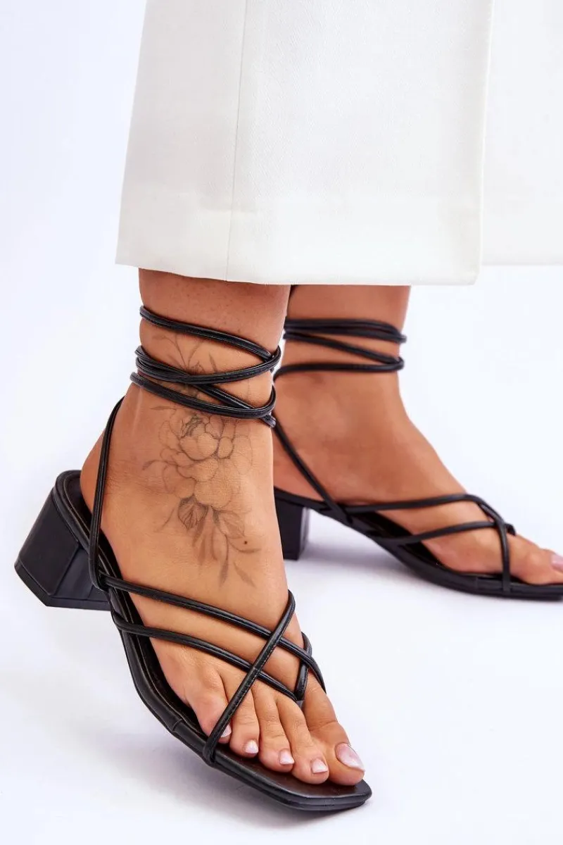 Wyjątkowe sandałki z wiązanie wokół łydki! Model ten jest w fasonie japonek. Sandałki posiadają cienkie paseczki, przez co są niezwykle przewiewne. Osadzone na obcasie w postaci niskiego słupka. Sandałki-japonki posiadają odkryty, kwadratowy nosek. Ten model z pewnością przypadnie Ci do gustu! Przy wyborze rozmiaru prosimy sugerować się tabelą rozmiarów.
