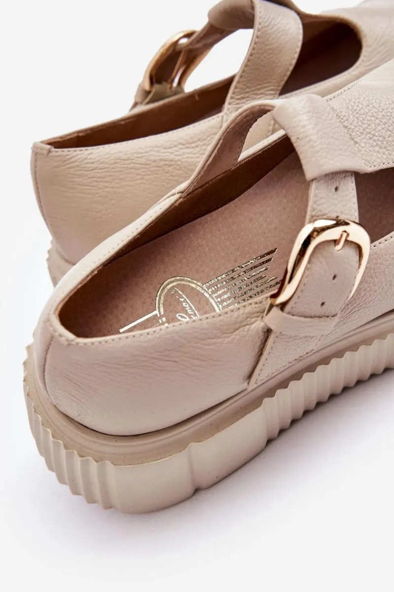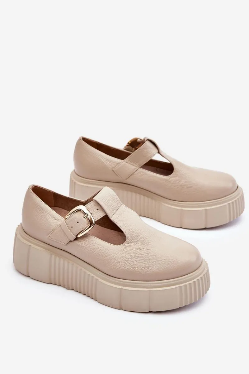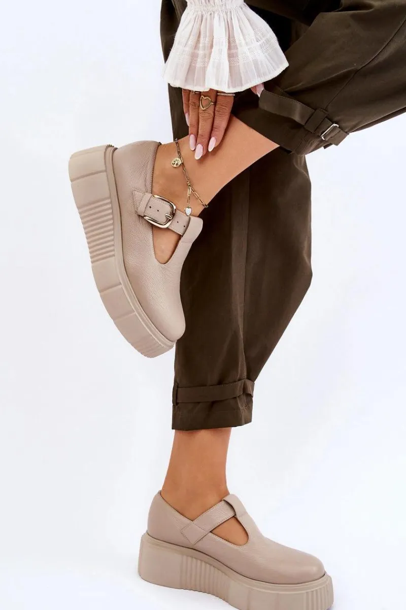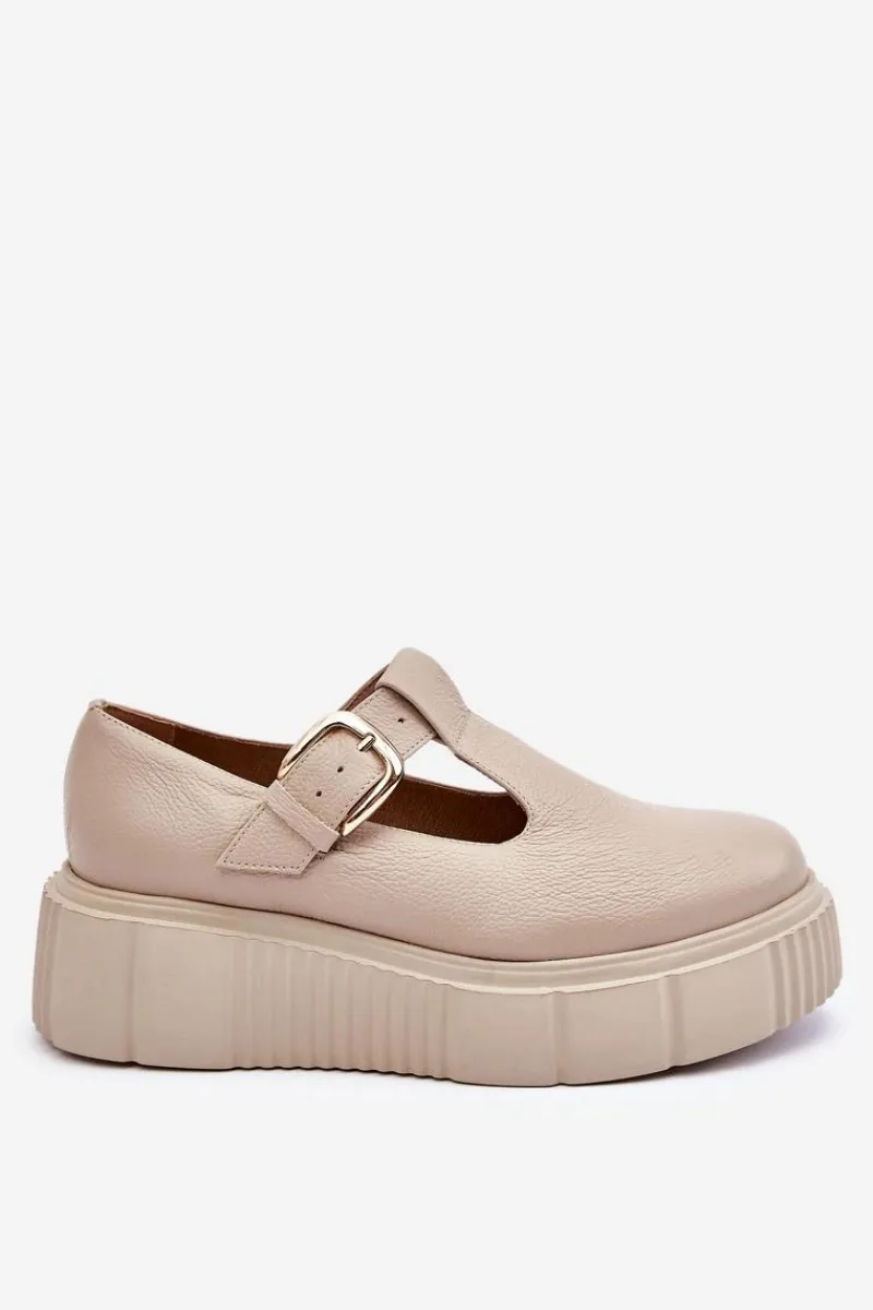 Modne półbuty damskie posiadają masywną platformę ze żłobieniami po bokach. Cholewka przed kostkę została wykonana z naturalnej skóry. Półbuty te posiadają usztywniany zapiętek. Zapinane z boku cholewki na klamrę z regulowanym paskiem. Ten model świetnie podkreśli Twoje stylizacje! Musisz go mieć! Przy wyborze rozmiaru prosimy sugerować się tabelą rozmiarów.